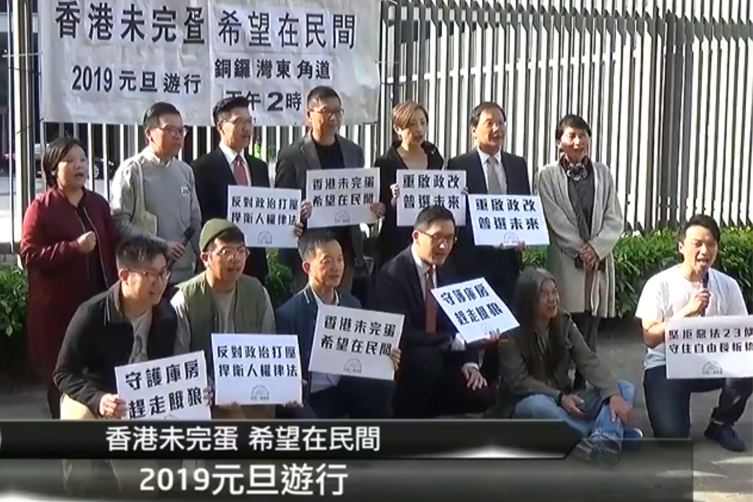 民間人權陣線宣布明年元旦日將舉行大遊行,以「香港未完蛋,希望在民間」為題,抗議政府的政治打壓,促請政府徹查前特首梁振英UGL 事件。佔中案被告之一陳健民表示,上街遊行是為了告訴政府,市民不會和它一同沉淪下去,又指只要一天尚有自由,都會珍惜遊行的權利,「最少向自己作出交代。」