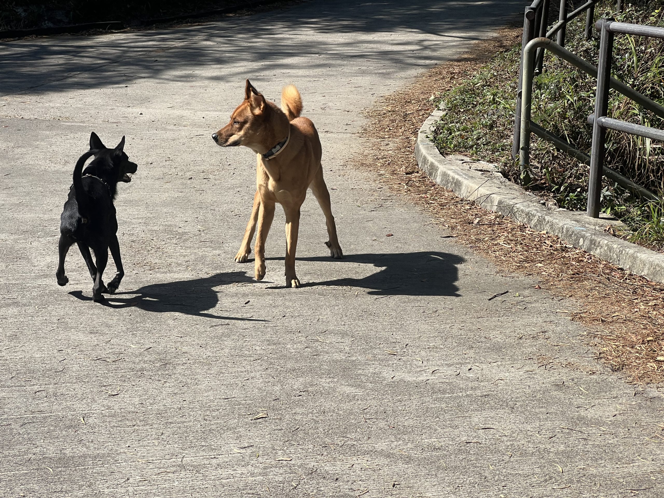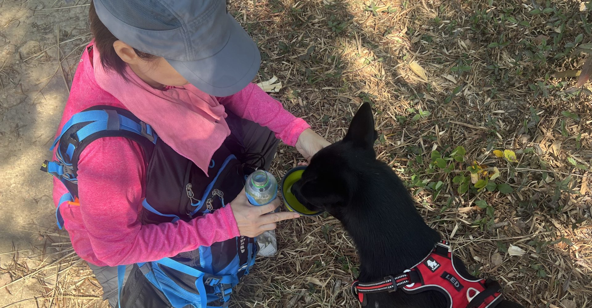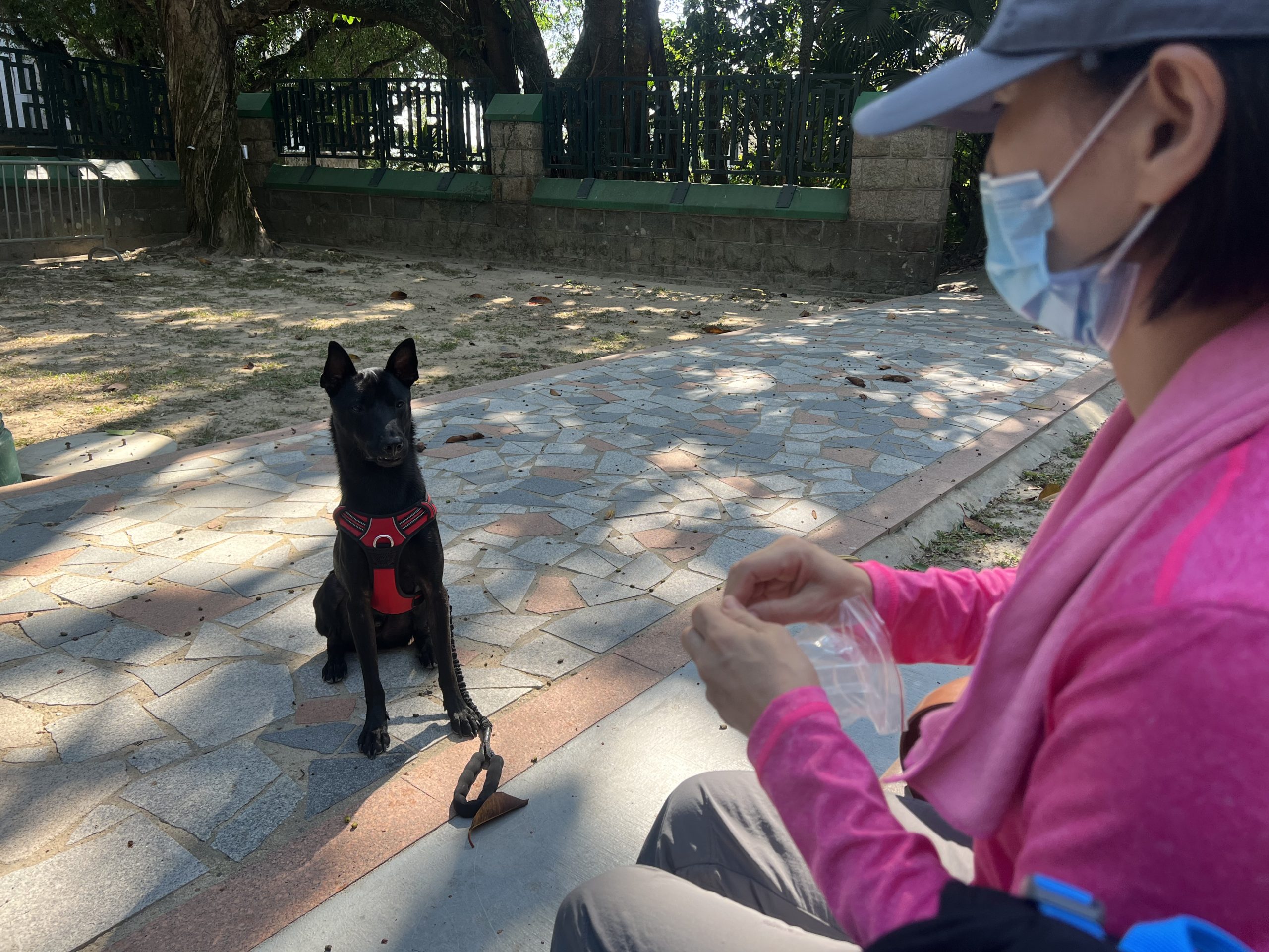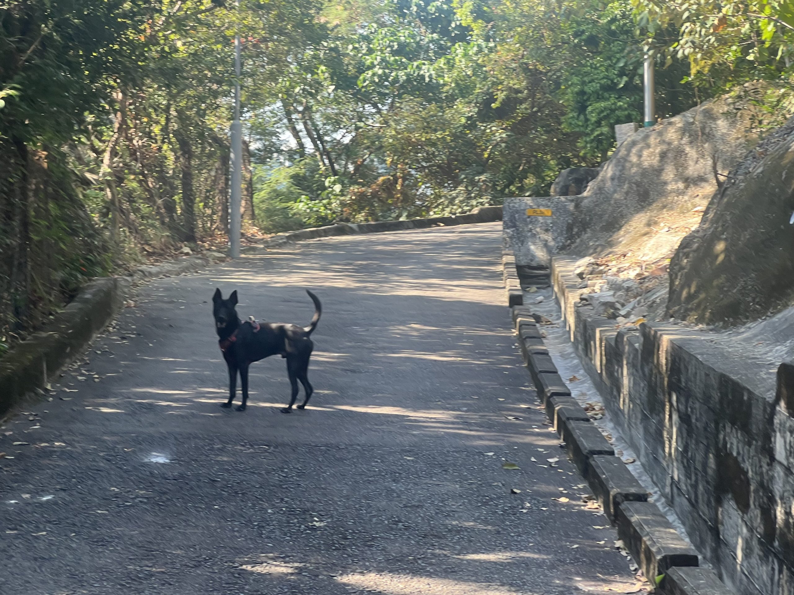 香港大部分的行山路線未有規範市民牽引20公斤以下的狗隻,Brenda到達行山徑範圍都會脫下狗繩,讓Veego自由走動,增加咟其他狗隻互動的機會。