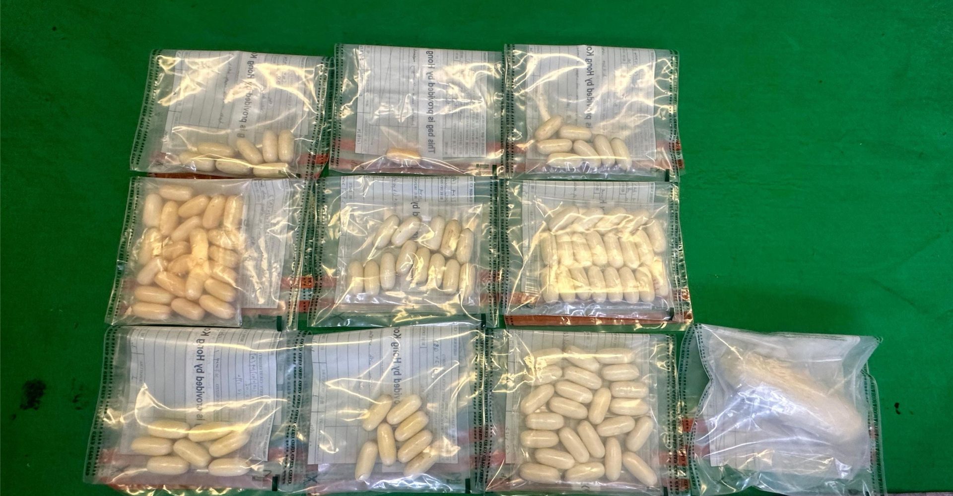 主圖片:被捕女性旅客排出的粒狀可卡因。