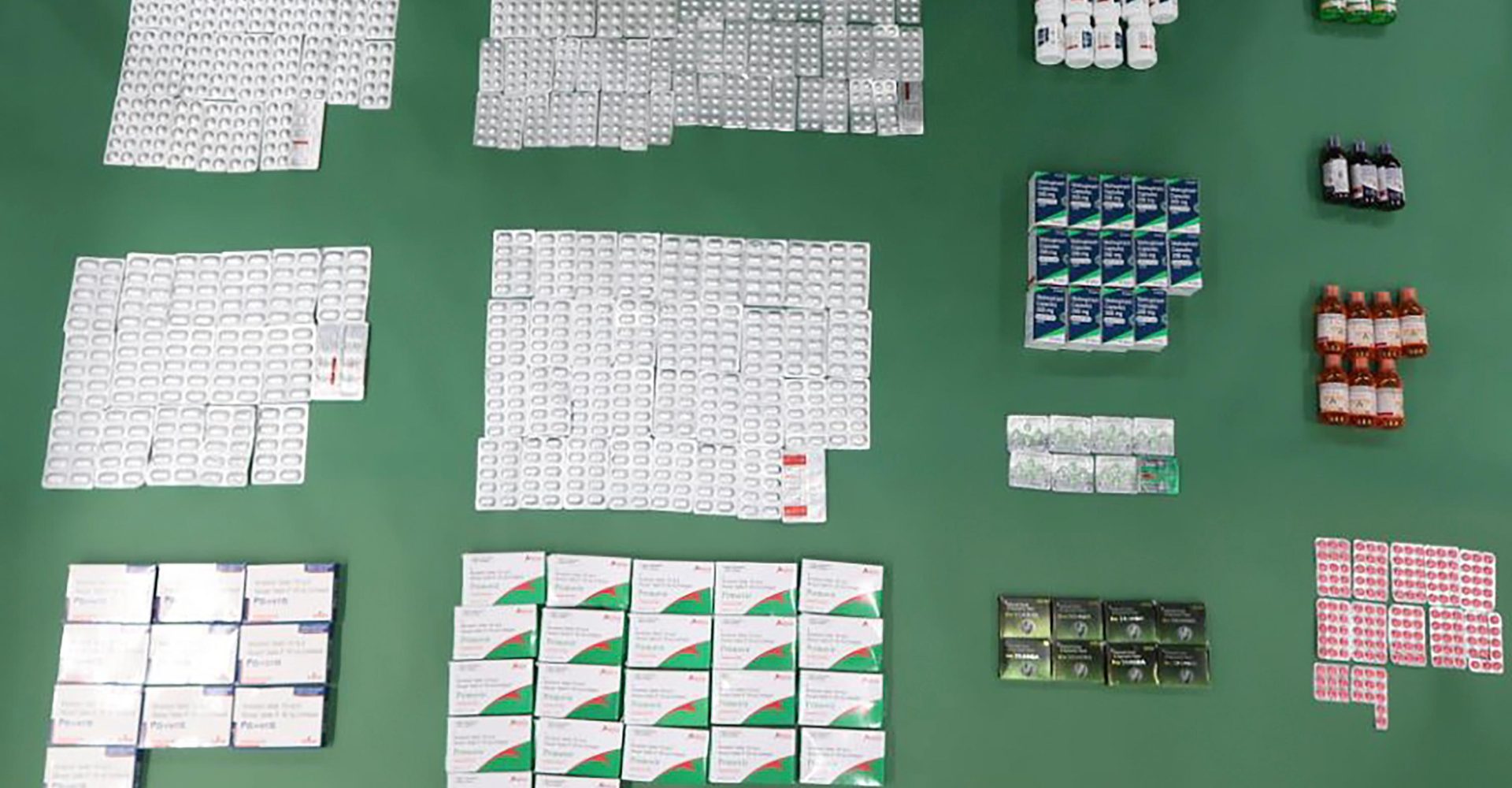 從政府新聞處發放的圖片所見,檢獲的藥物中包括懷疑印度製造的仿製新冠口服藥Primovir。仿製藥英文為generic drugs,又譯作非專利藥物。