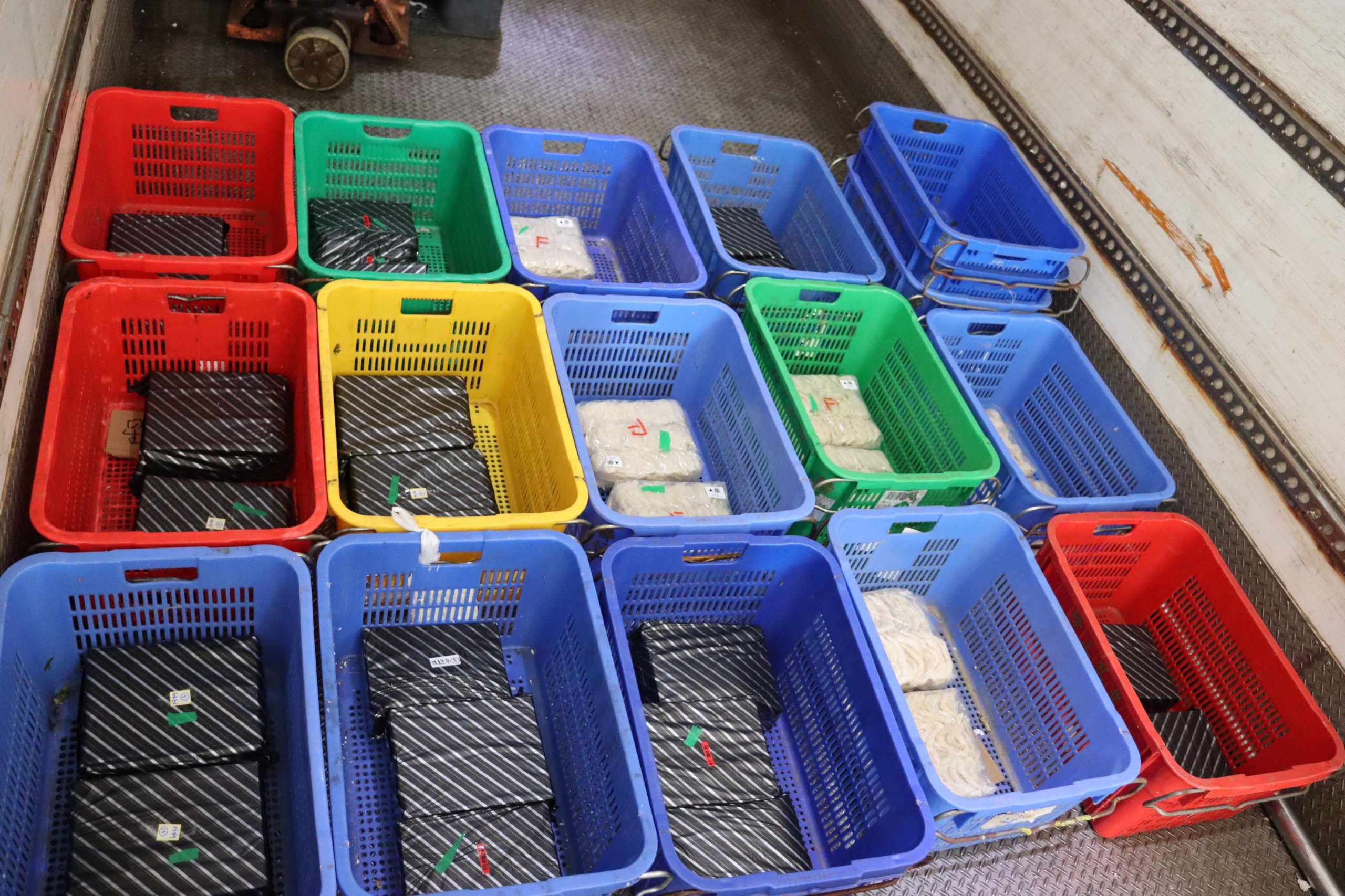 海關發言人表示,海關人員昨日(3日)根據風險評估,在文錦渡管制站截查一輛報稱空載的出境貨車,在車斗內發現數堆疊高的膠籃,並在部分膠籃內檢獲該批懷疑走私燕窩。