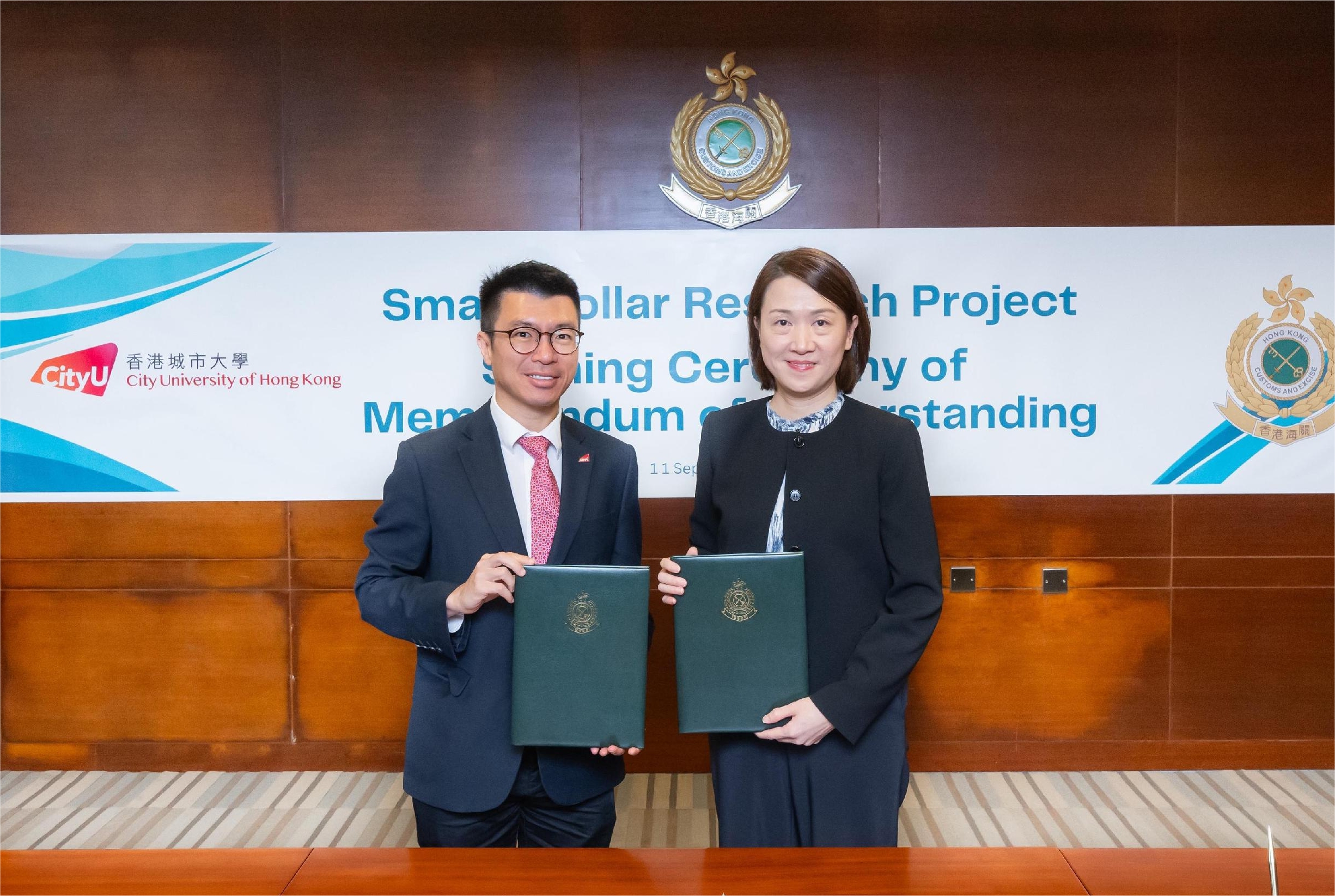 簽署儀式在海關總部大樓舉行,由海關助理關長(邊境及港口)蔣依莉與城大副校長(研究)岑浩璋簽署。