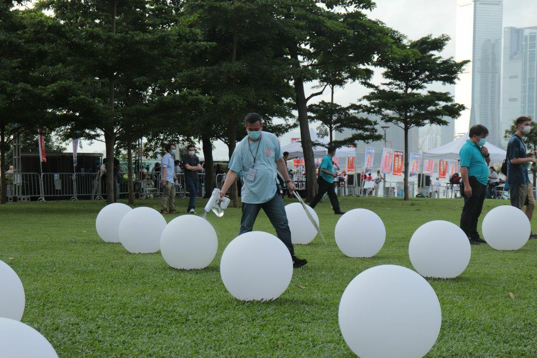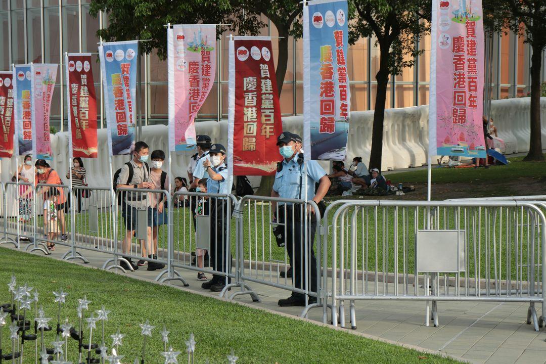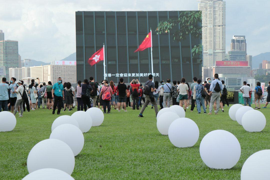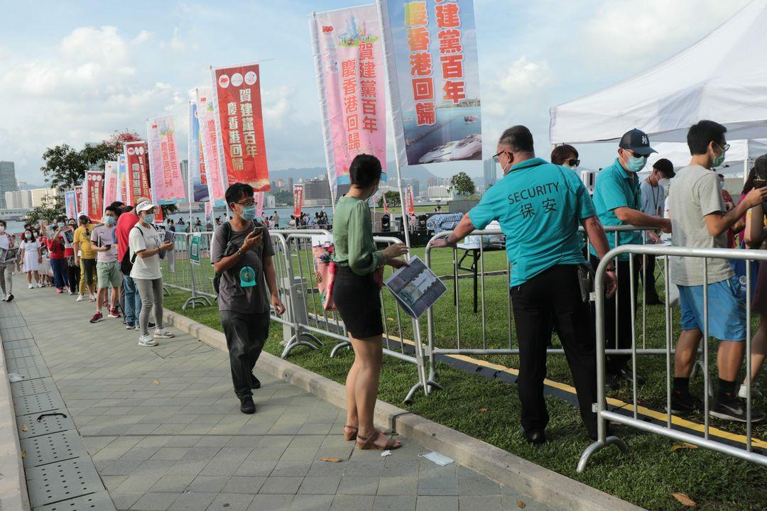 圖片集社會新聞編輯推介 添馬公園賀回歸24周年(吳慧慈) July 1, 202101257 香港各界慶典委員會由七月一日起,連續三日在金鐘添馬公園舉辦「光影3D耀維港」,慶祝中國共產黨建黨一百周年及香港回歸24周年。大會將入場時限定為約廿分鐘一節,每節約有百餘人進場,入場可觀看一段約十分鐘的影片,內容包括中國創黨歷史、香港回歸及近年《香港國安法》相關事跡。 有參與者著上印有「中國人不吃這一套」紅色衣服,有人佩戴「中國夢」口罩,亦有人自備國旗在現場拍照留念。 記者、攝影:吳慧慈 2021.7.1 Related Related tags : 吳慧慈 署理行政長官李家超:特區的安全回來了 Previous Post 警員銅鑼灣遇襲刀手亡 鄧炳強指孤狼式恐襲 Next Post