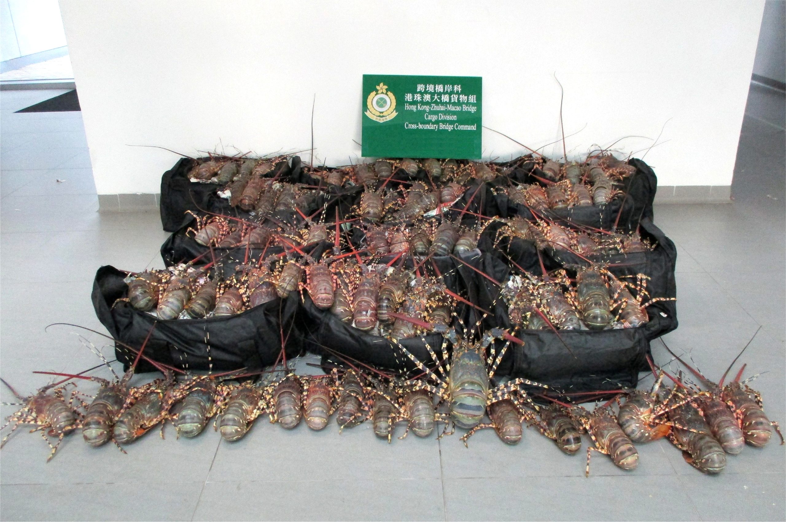 海關在港珠澳大橋香港口岸檢獲懷疑走私活龍蝦