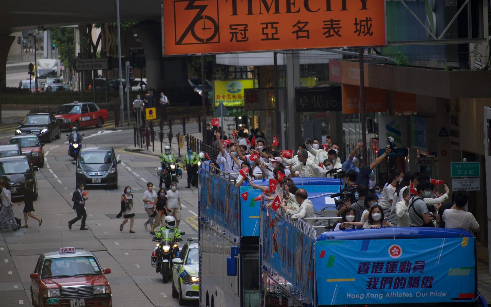 香港代表隊在東京奧運取得一金兩銀三銅的歷史佳績,當局與港協暨奧委會早上安排代表隊成員乘坐開篷巴士尖沙咀巡遊。同日,行政長官林鄭月娥出席東京奧運港隊返港歡迎儀式,她表示運動員全力以赴,展現堅定的決心和頑強的鬥志,以及打不死的香港精神。