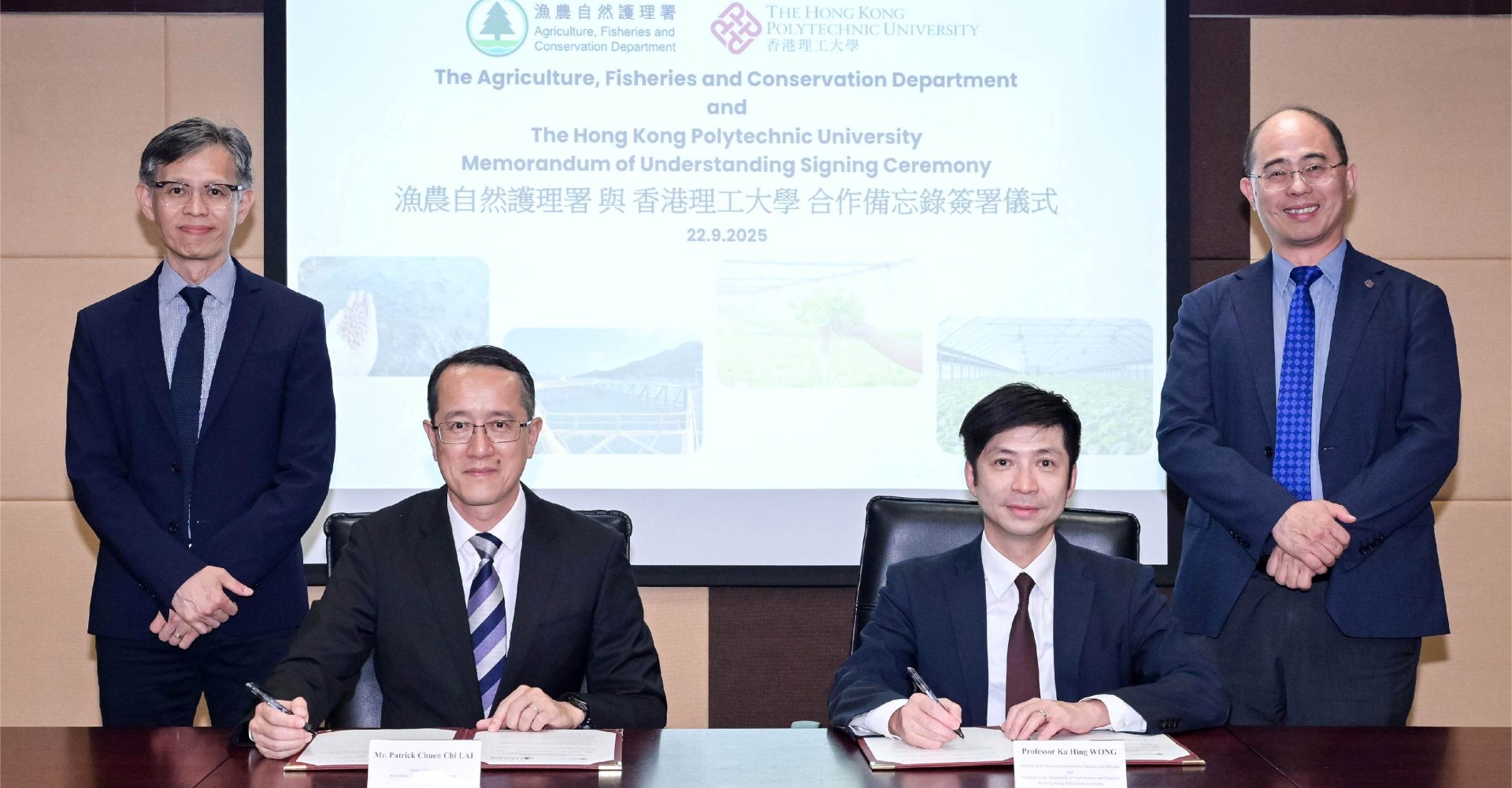 漁農自然護理署與香港理工大學今日簽訂合作備忘錄,雙方同意探討漁農業的科技創新發展,以及應用的合作機會。理大指其食品科學創新研成果可轉化為漁農業的實際應用。