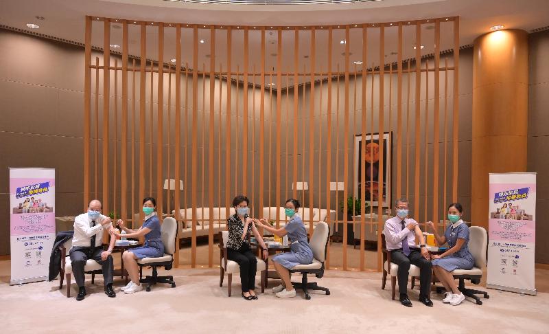 行政長官林鄭月娥今日(28日)率領多名司局長和副局長接種季節性流感疫苗,呼籲市民及早接種流感疫苗,並保持良好個人和環境衛生,作好準備應對冬季流感高峯期。