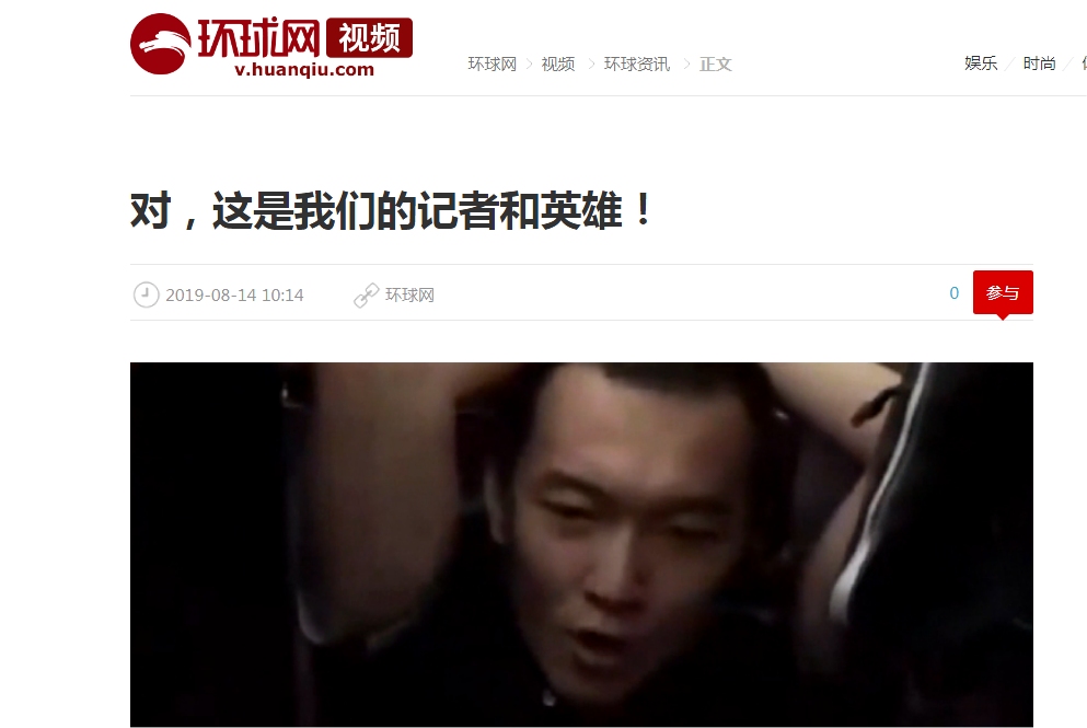 在機場被示威者綑綁及毆打的內地《環球時報》記者付國豪,下午已經出院。他表示當時沒有做過引起爭議的行為,又說不應該受到襲擊。《環保時報》今天在頭版頭條的標題中指付國豪「遭暴徒野蠻毆打」,而環球網編輯部則強調「中國記者決不能允許被這樣對待」。