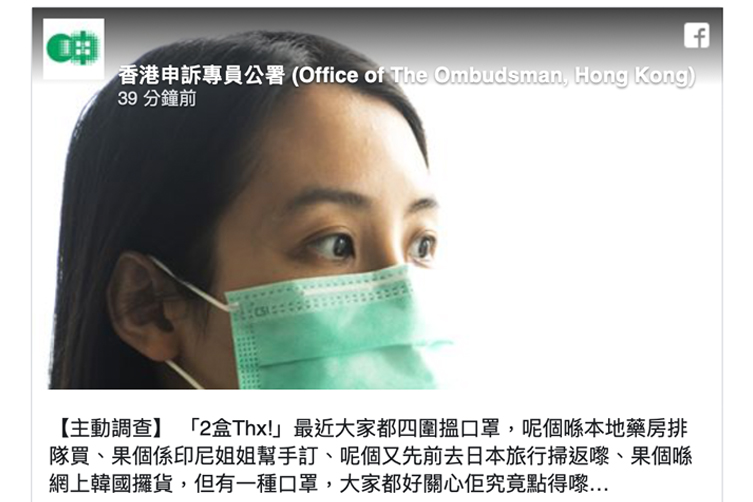 新型冠狀病毒肺炎疫情肆虐,本港口罩需求急增,有報道指CSI口罩在坊間轉售。申訴專員公署今日(5 日)宣布,主動調查懲教署生產的CSI 口罩分發情況。