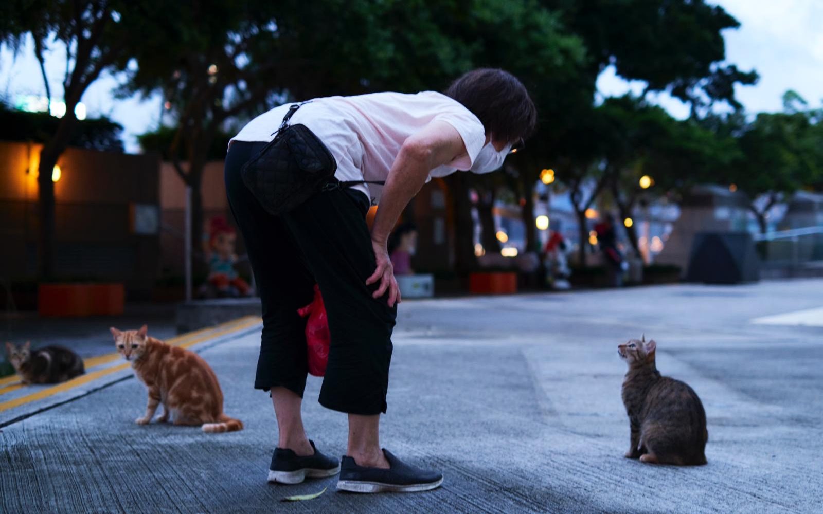 疫症下,曾經是旅客熱點的金紫荊廣場十分冷清,另一邊的海旁卻因為一些流浪貓 ,為這個疫市增加一點人情味。