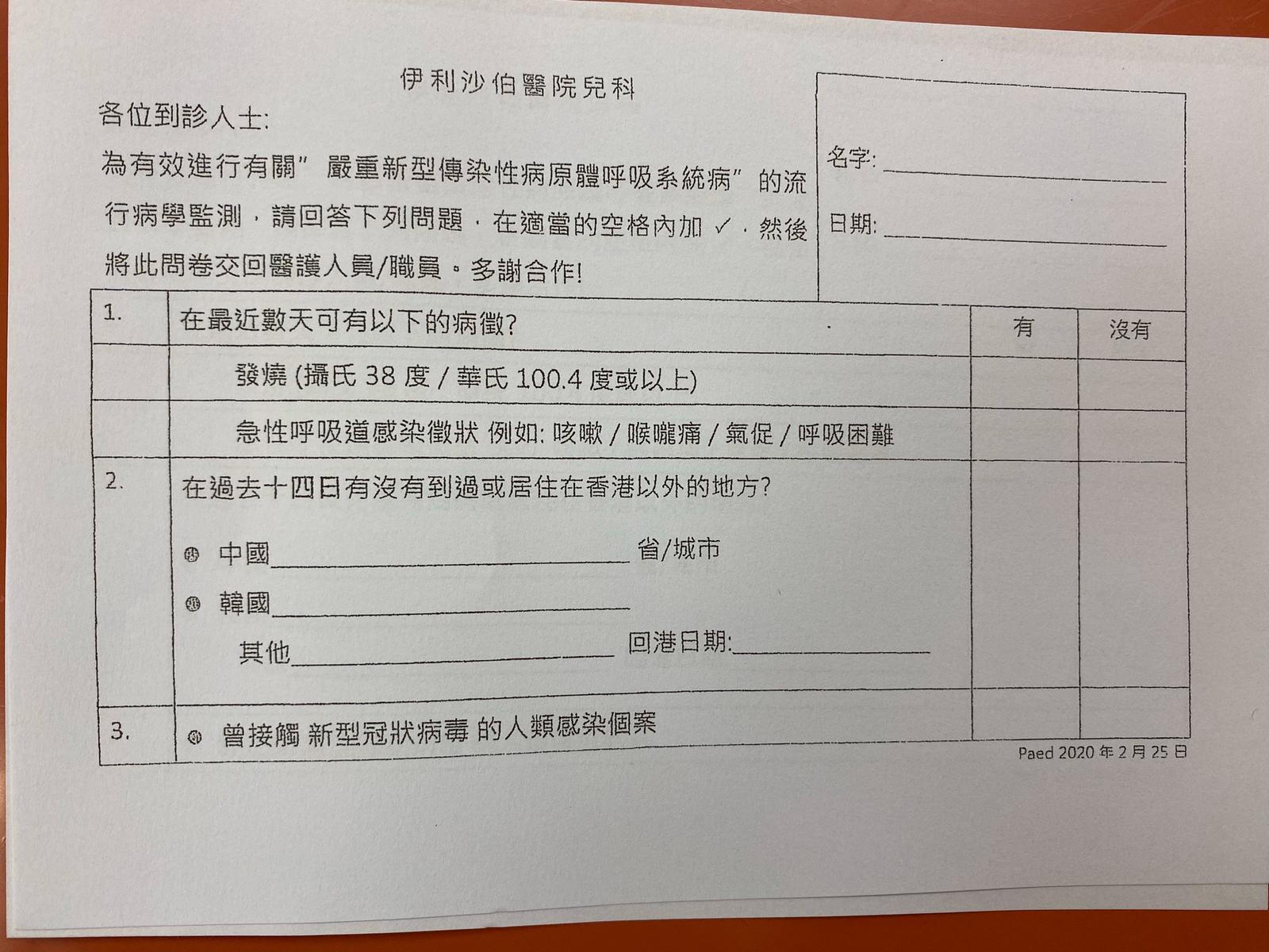 到專科門診掛號,登記的工作人員問我:「你現在有沒有發燒徵狀?」我回答:「沒有。」「你十四天內有否外遊?」「沒有。」他遞給我一張申報表,喚我填妥後交給當值護士,便任由我大搖大擺地進入門診大廳。我既無奈又恐懼,香港公立醫院的把關工作竟然比屋苑保安還要寬鬆,連最基本的量度體溫也沒有做。幸好的是,部分病人因疫情爆發紛紛改期,我能找個遠離人群的座位,等待叫號。不出十分鐘,便輪到我,匆匆完成覆診。