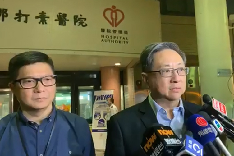 盧偉聰在醫院內逗留約半小時,出來時在醫院正門接受傳媒採訪。他感謝警員一直謹守崗位,但過去一個月香港社會嚴重撕裂,情況越來越差,已到令人髮指的程度。他續指,每周末的遊行完結後均有一班暴力示威者佔據街道、破壞公物和攻擊警員,如前日(13日)在上水有4名便衣警員被一班示威者圍堵及襲擊、昨日(14日)在沙田有一名警員的右手無名指被咬斷一截及另有多名警員或被打傷頸部、或面骨及眼骨裂、或腹部被擲物所傷等。他形容部份人士「猶如失去常性」,即使見到警員跌倒在地但仍不停踢打。