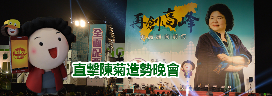 專題報道 直擊陳菊造勢晚會(片) November 29, 201401310 高雄市長候選人陳菊昨晚於競選總部外舉行造勢晚會,邀請了不少歌手獻唱。大概晚上9時,陳菊和前行政院長謝長廷現身台上,台下支持者情緒高漲。 記者:朱悅瀅 Hint: Unfortunately your browser does not have Flash Player installed or the Flash Player version is outdated. You need Flash Player to view media in this community. Download Flash Player Related 柯文哲:用愛推倒高牆 Previous Post 回到「九二八」 Next Post