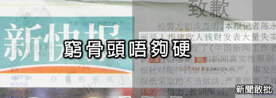 新聞敢批 窮骨頭唔夠硬 October 29, 201301771 新聞敢批 2013 10 29 Hint: Unfortunately your browser does not have Flash Player installed or the Flash Player version is outdated. You need Flash Player to view media in this community. Download Flash Player 主持:吳侃駿 Related Dr. Steve Wallace: Top 9 English Errors that Cause Hong Kong Research Papers to be Rejected Previous Post 新快報事件隱情 Next Post