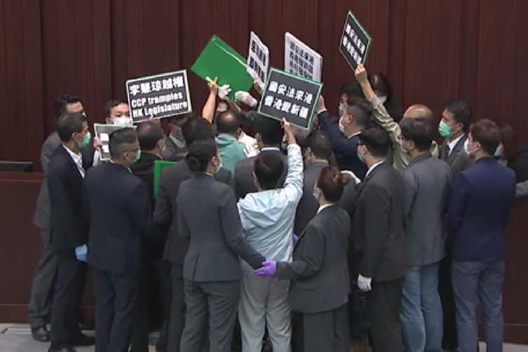 李慧琼在內會開始前 15 分鐘進入會議廳,工黨張超雄、人民力量陳志全、議會陣線朱凱廸先手持抗議李慧琼「越權」標語,站到主席台前抗議,多名民主派議員隨後加入。朱凱廸、人民力量陳志全、民主黨尹兆堅和許智峯等人先後被趕離場。