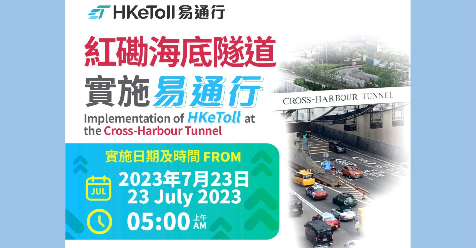 磡海底隧道將於本月23日星期日上午5時起實施「易通行」,而在實施前1小時,即凌晨4時至5時,紅隧來回方向及其支路會臨時封閉。
