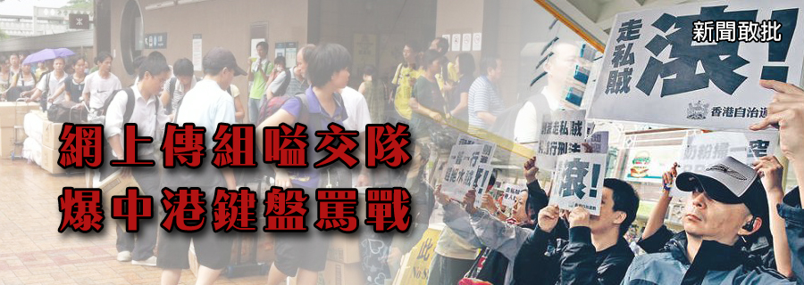 昨日有報章以「大陸網民請嗌交隊 殺入香港反港人」為題,報導在內地網絡平台的一則帖文,內容是有人以三千元招才到香港吵架,並且要接受訓練,練口才、聲量、速度及兇惡能力,目的是要鬧至對方無還擊之力為止。帖文隨即在網上瘋傳,立即有網民報名,甚至建議另組打人隊,打香港人。相關帖文已被刪除,但已廣泛流傳。