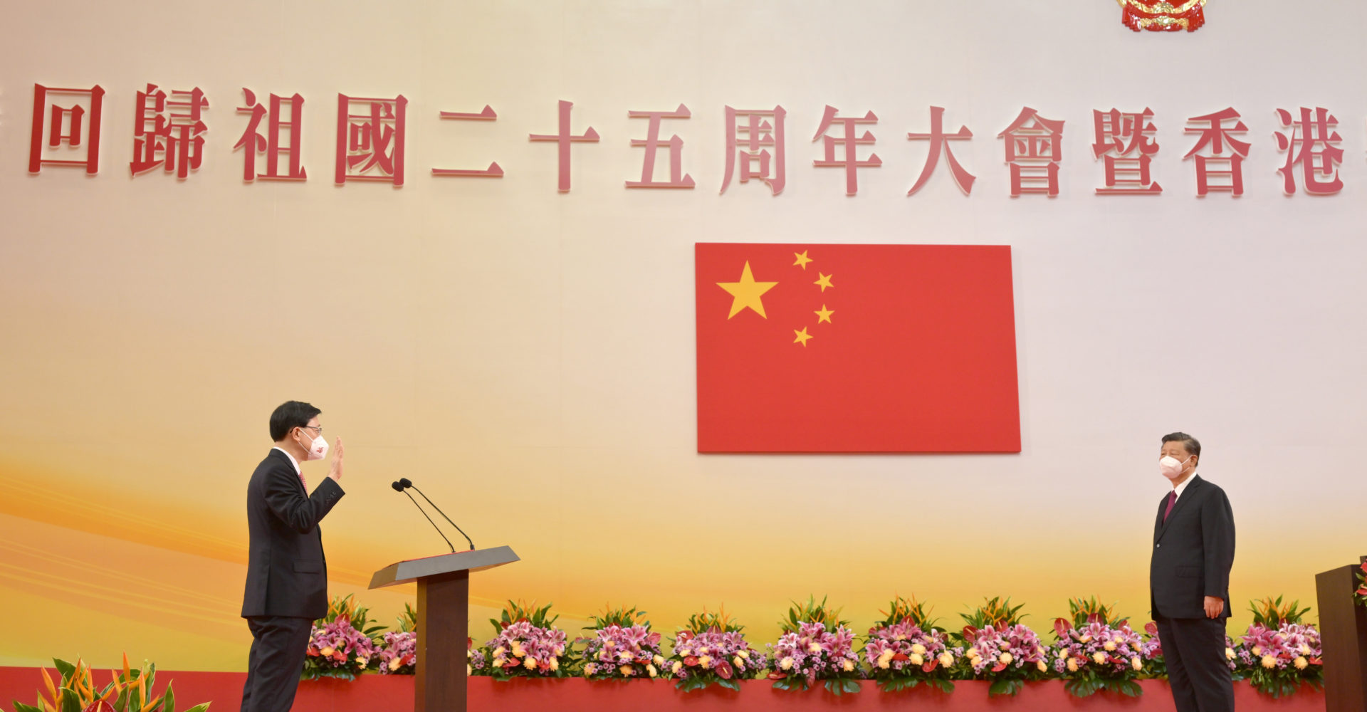 封面圖片:國家主席習近平(右)在香港會議展覽中心舉行的香港特別行政區第六屆政府就職典禮上,為行政長官李家超(左)監誓。