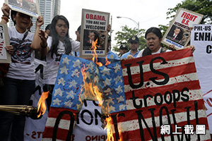 中美南海衝突事件簿 菲民眾抗議美方煽動南海爭議 January 28, 201601179 APEC於菲律賓開幕,會場外爆發大規模反APEC和反美示威,多個民間組織到場抗議,並與警方發生衝突。菲律賓學生聯合會等組織,抗議奧巴馬在南海問題上煽風點火,企圖把APEC用作促進美軍重返亞太的平台。團體除高叫口號外,更焚燒帶有諷刺意味的山寨版美國國旗。 Related Related tags : 中美南海衝突亞太經濟合作組織會議(APEC)反美示威菲律賓菲律賓學生聯合會 美國:中美關係因南海倒退 Previous Post 安倍APEC上沒與習總交流 Next Post
