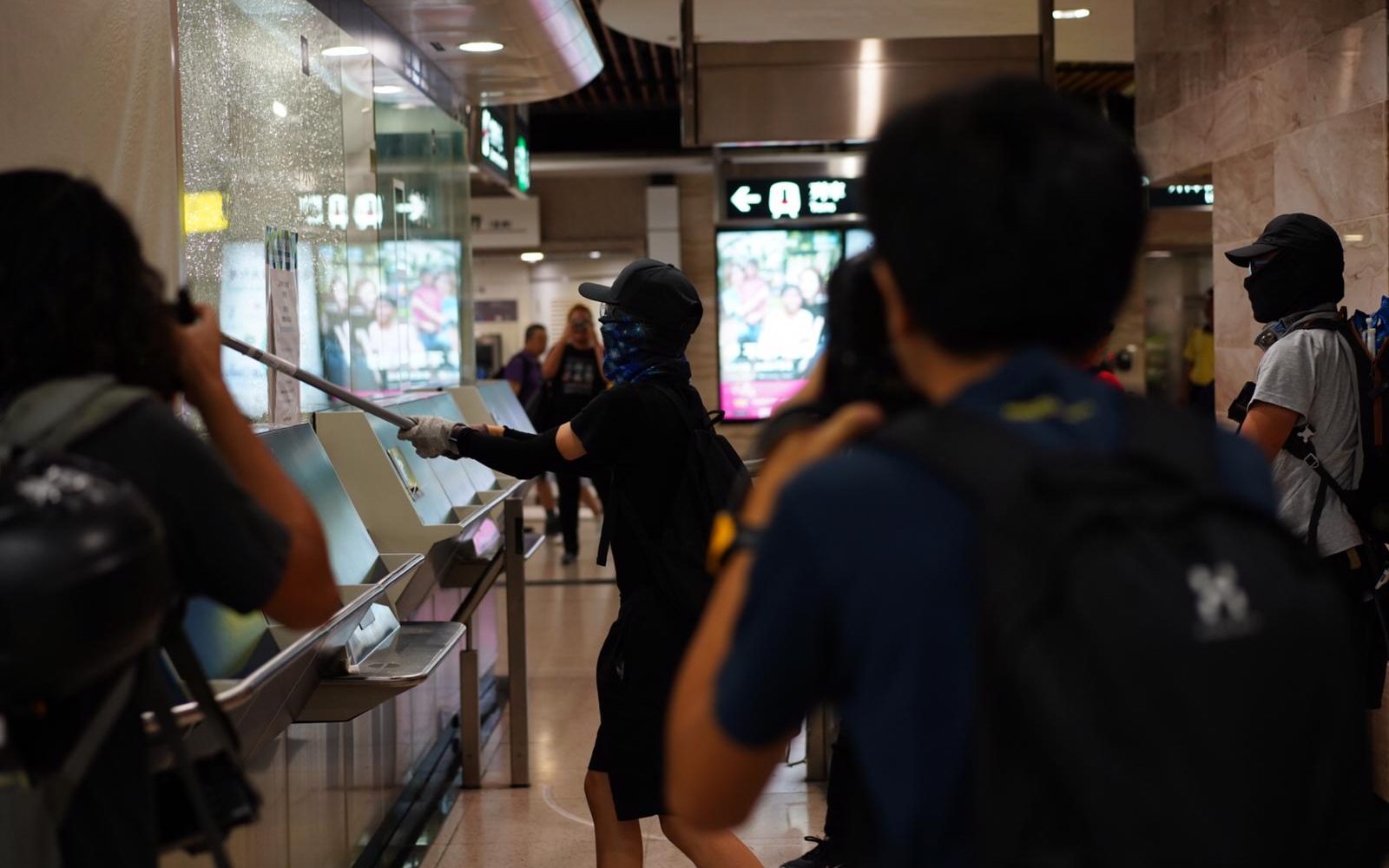 晚上九時許,多名蒙面人士「快閃」破壞沙田港鐵站設施。