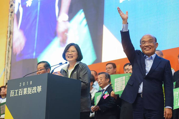 台灣總統蔡英文站台時發表講話。蔡英文曾擔任蘇貞昌的行政院副院長,她指與蘇共事期間一同處理台灣事務,發現蘇很會做事,而且要求很高,指「蘇貞昌是我政治上的老師」,表示從蘇貞昌身上學到很多,教導她做事。 蔡英文續指,於2012年與蘇貞昌共同競選民主黨總統候選人提名,自己只是以很少很少的差距贏得提名,但從與蘇貞昌競爭中,令自己反省要更強大使出渾身解術取贏,認為「沒有强大的蘇貞昌,就沒有之後的蔡英文」。