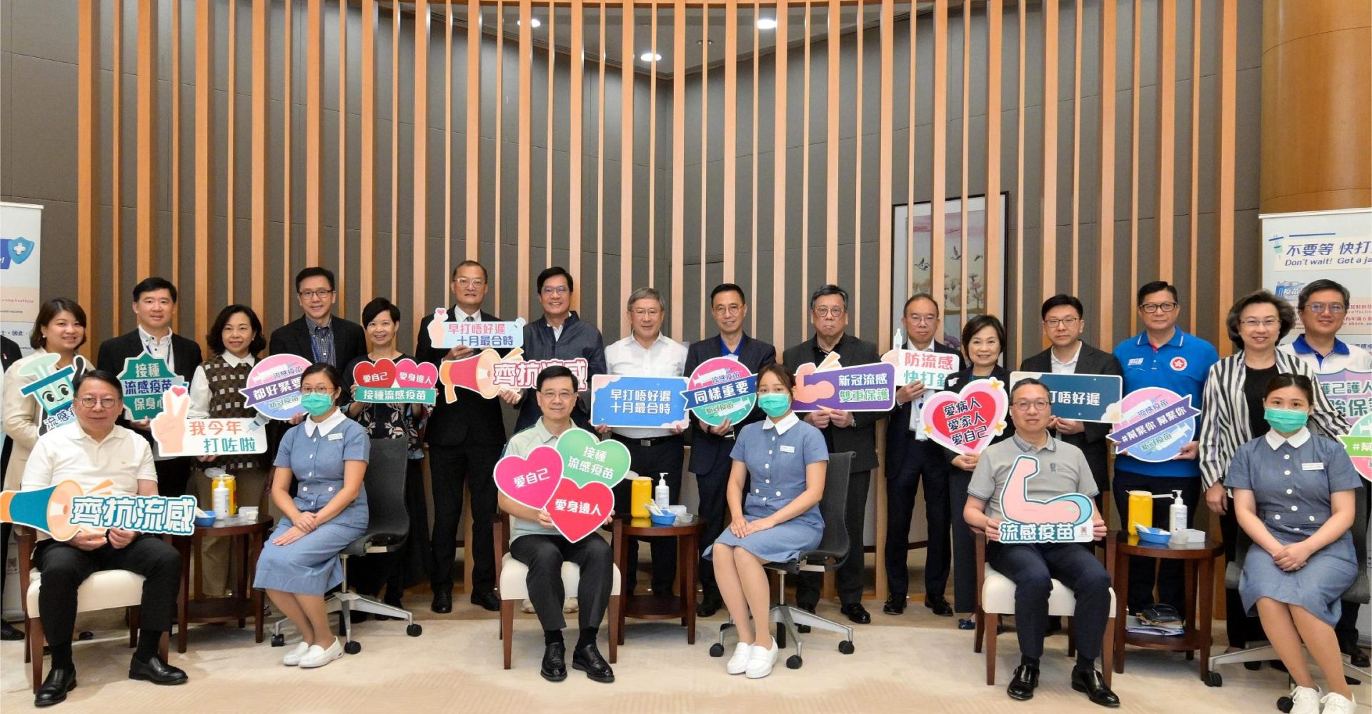 主圖片:行政長官李家超及多名主要官員呼籲市民盡早接種季節性流感疫苗,以在冬季流感季節來臨前加強保護。