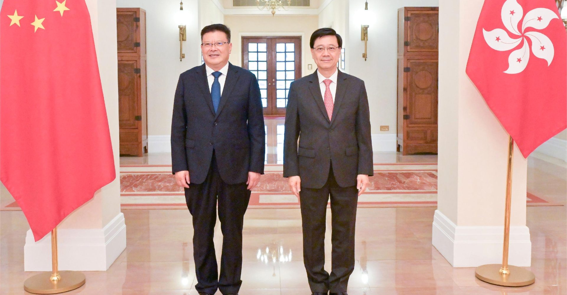 主圖片:行政長官李家超(右)在禮賓府與深圳市委書記孟凡利(左)會面。