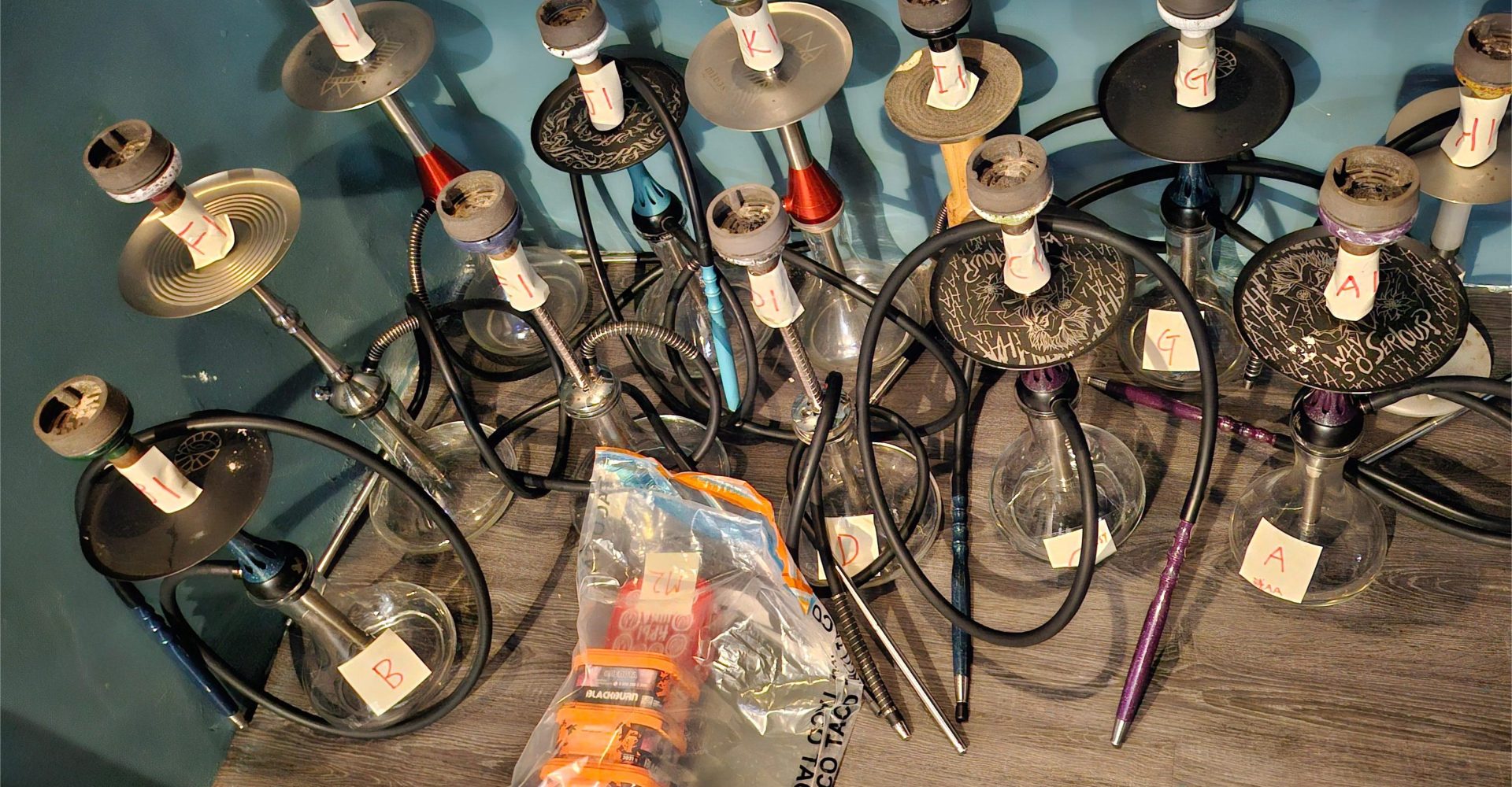 主圖片:控煙酒辦公室與警方昨晚在尖沙咀、中環及灣仔,打擊在禁煙區非法吸用水煙時檢獲的水煙。