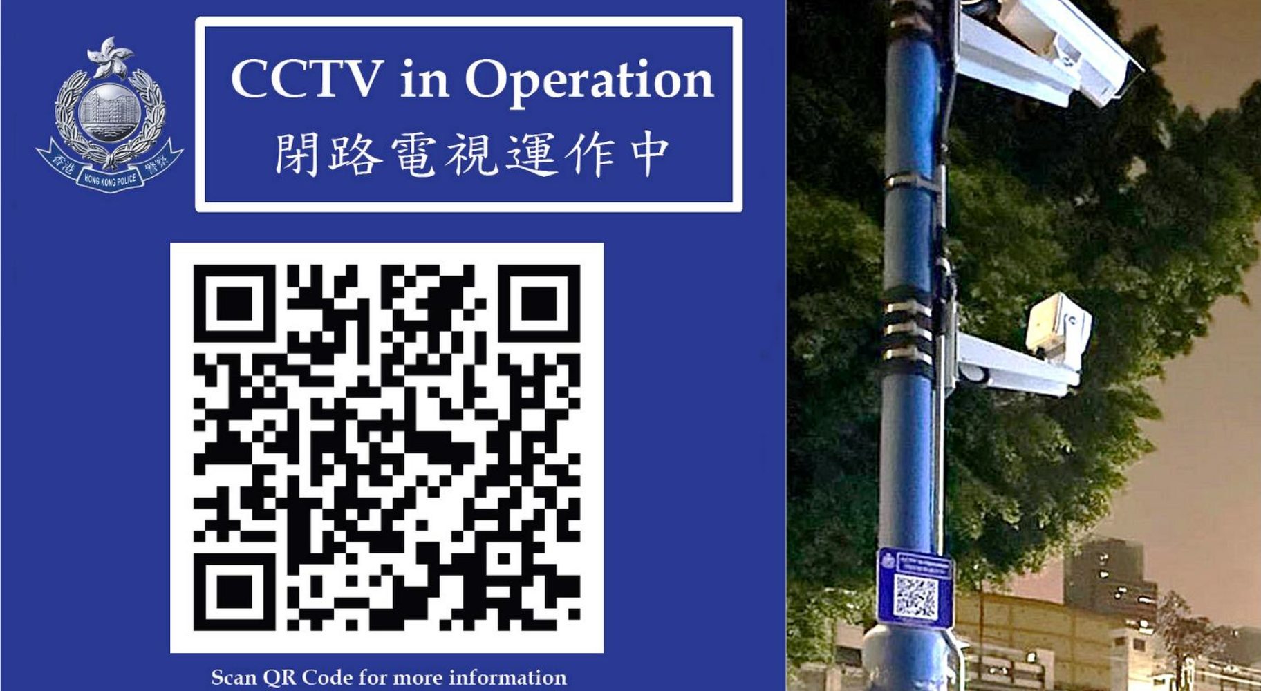 主圖片:左方為設置於「銳眼計劃」閉路電視鏡頭附近範圍的告示,右方為安裝於燈柱的閉路電視鏡頭。(來源:警務處)