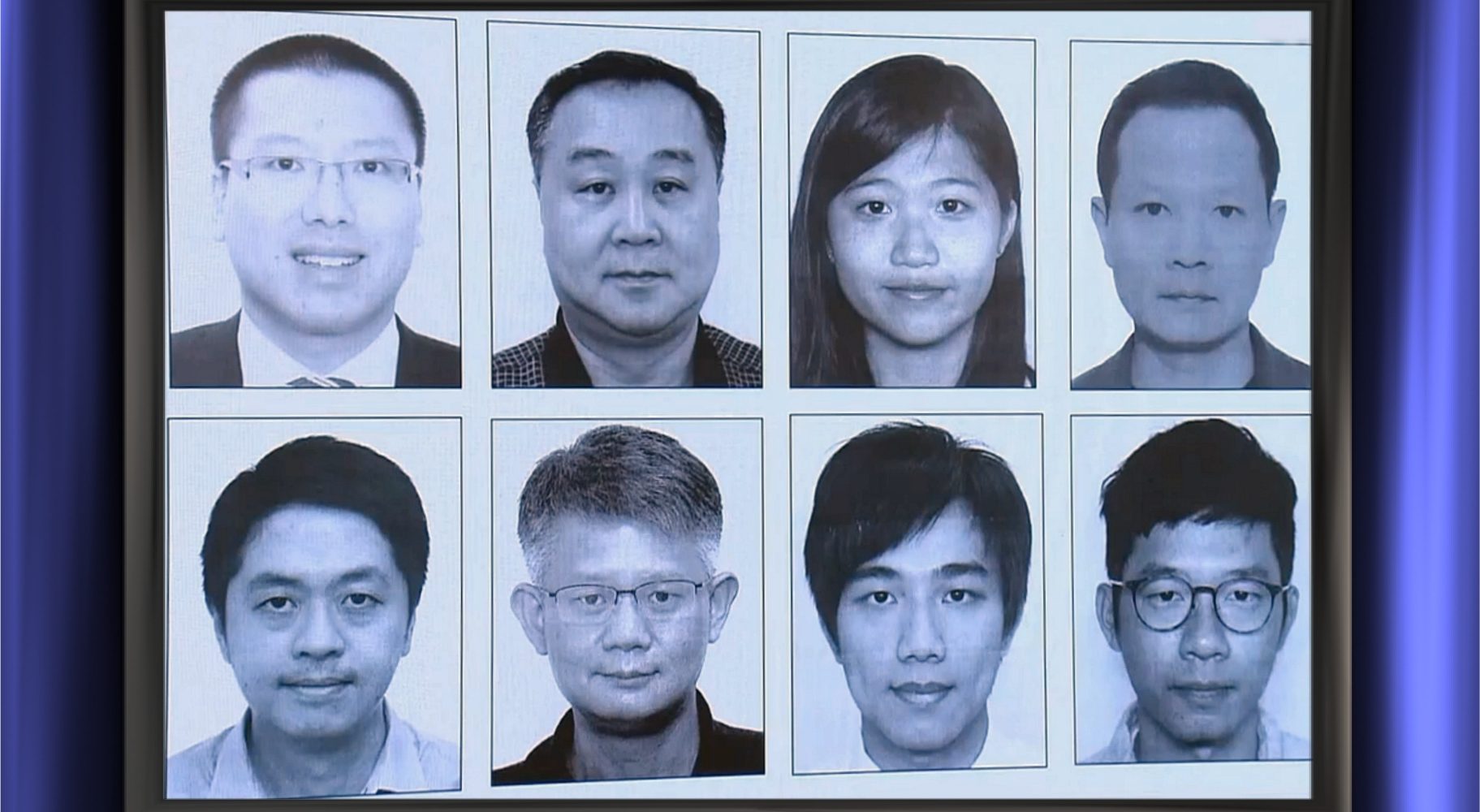 主圖片:被通緝的8人,左起、由上至下:任建峰、袁弓夷、郭鳳儀、郭榮鏗、許智峯、蒙兆達、劉祖廸和羅冠聰。