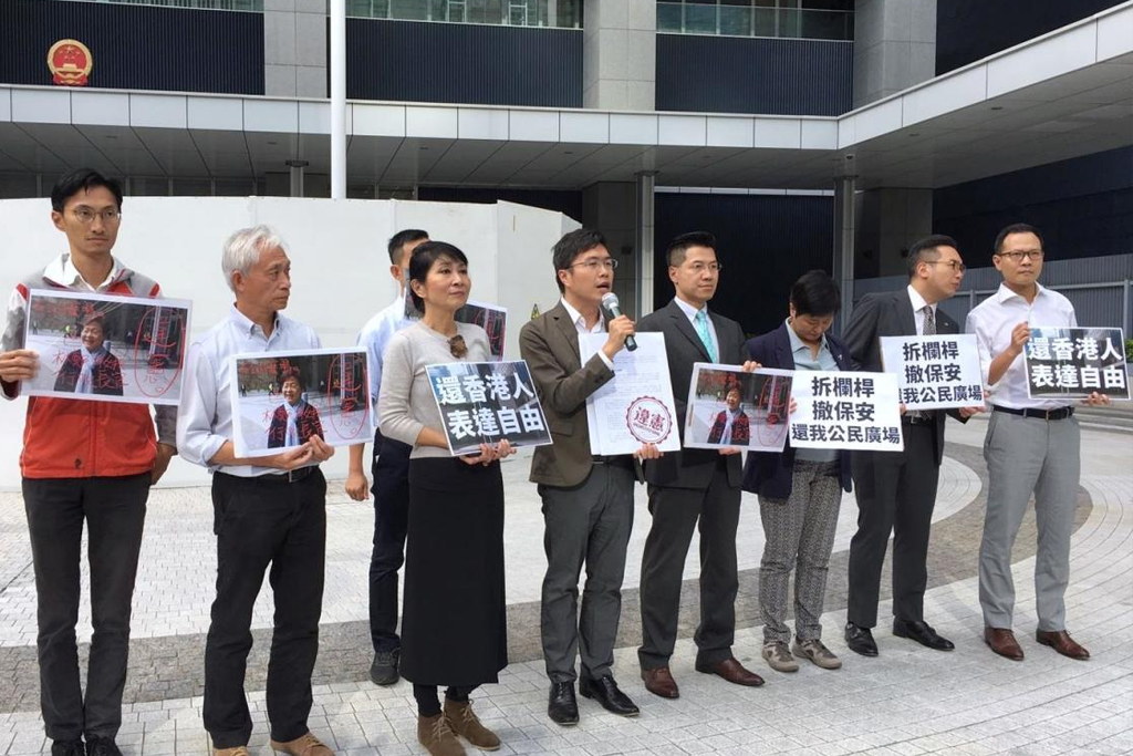 高等法院日前裁定行政署就「公民廣場」訂下的使用守則違憲。議會陣綫及部分民主派議員發起遊行,要求政府拆除圍欄及撤走保安。