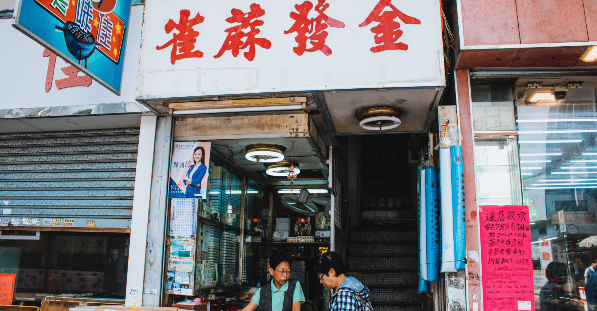 金發麻雀的樓梯舖位於熙來攘往的路邊,牆上的玻璃櫃放滿了不同款式的麻雀,亂中有序。縱使經過時間的洗禮,店舖外的招牌依然如故,站在對面街也能一眼望出。店內主要出售人手雕刻的手雕麻雀。