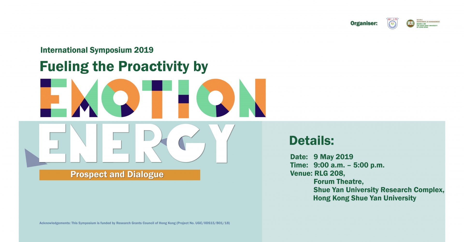 一場主題為「通過情感能量促進主動性的展望和對話」的國際研討會將於2019年5月9日(上午9點至下午5點)在香港樹仁大學多媒體製作中心RLG208舉辦,該研討會是由香港樹仁大學工商管理學系主辦,由香港研究資助局(Research Grants Council of Hong Kong)資助開展的。