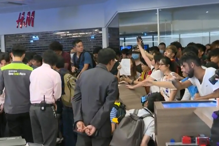 沙田新城市廣場上週日(14日)爆發警民衝突,大批市民被困商場內,亦有示威者遭圍捕。商場業主新鴻基地產未有按市民要求在6時回應警員進入商場事件。過百名市民昨晚聚集在商場內,向商場詢問處職員投訴,要求商場高層交代 。