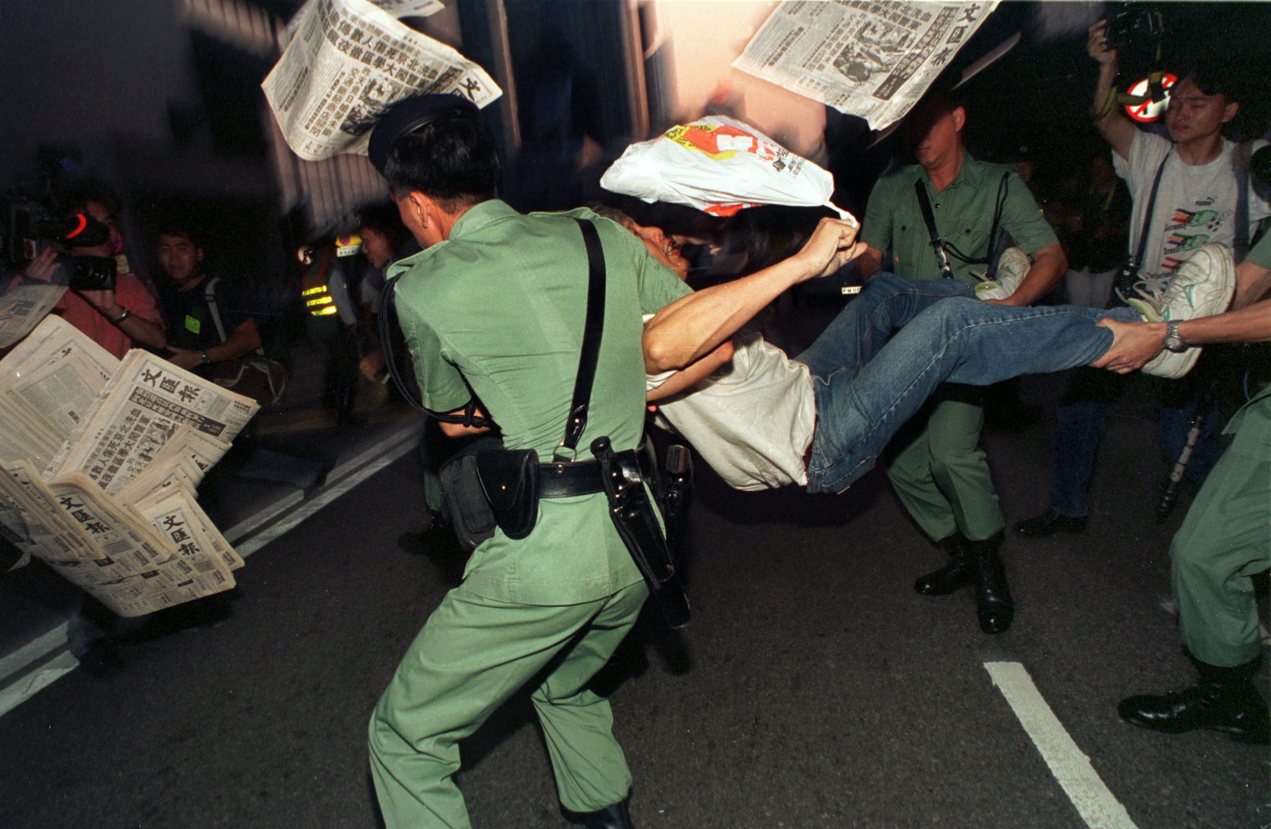 事關重大,他壓力很大,因為無得重來。「事前我知道整個流程,幻想過程的發生,每一個步驟我要影什麼,用什麼鏡頭,直還是橫的等等。要知道那年代是用菲林的,一筒36格,影完回捲,然後換菲林,一定會錯過一些場面,所以我帶了三部相機、五支鏡頭、兩隻腳架,我一個人,從會展舊翼,走到新翼,命都無!」