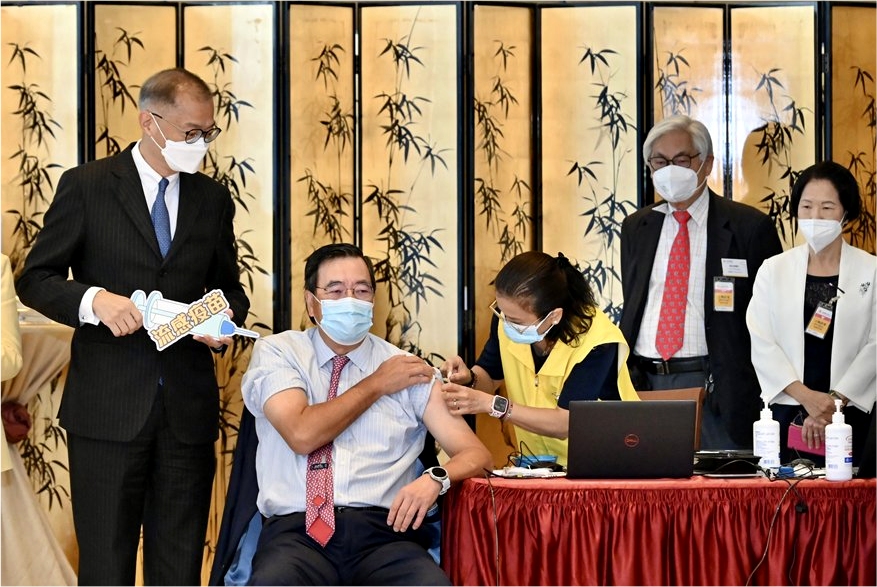 封面圖片:盧寵茂(左1)今日出席立法會接種季節性流感疫苗和新冠疫苗活動,支持立法會主席梁君彥(左2)和議員接種疫苗。