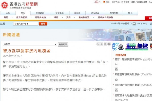 內地公安覆函警方 稱銅鑼灣書店失蹤3人涉刑事案受查