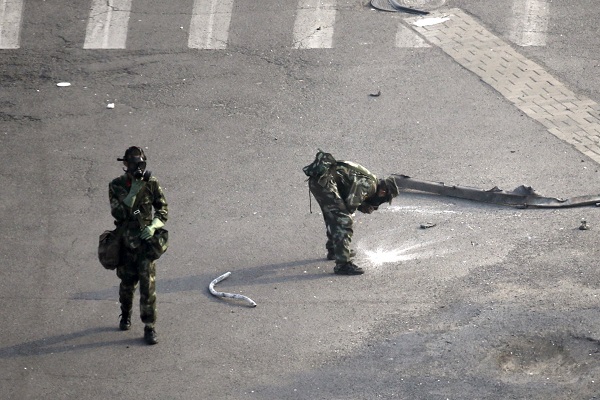 【本網訊】天津險品倉庫爆炸,直至本港時間中午12時半,死亡人數增至85,包括21名消防員,721人受傷,當中包括4名香港人。《新京報》引述武警消息,指核心爆炸區東面發現俗稱「山埃」的氰化物,專業人員進行處理,方圓三公里的人要全部撤離。另外,當局指由於風向轉變,要求在天津開發區第二小學臨時安置點的民眾,戴上口罩,穿上長袖衫褲撤離。