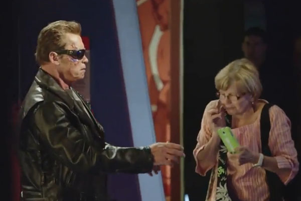 據英國《每日郵報》報導,阿諾舒華辛力加(Arnold Schwarzenegger)早前化身其經典角色未來戰士T-800,於洛杉磯杜莎夫人博物館扮蠟像,他於自己的Youtube頻道中上傳了有關影片。片段中他扮成蠟像,當市民意圖走近「蠟像」拍照時,突然說話及伸手擁抱市民,令他們又驚又喜。阿諾亦於荷里活街頭走入人群,以電影對白和情節與途人開玩笑,大受市民歡迎。