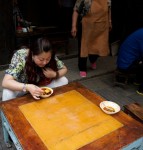 筆者半信半疑走入熙來攘往的小村,一條彎來彎去的小徑,兩旁都是各式各樣的小食店販,賣的東西有麵皮、酸奶、烙麵、驢肉、豆腐、羊肉、夾饃、醪糟和紅薯條等,令人眼花繚亂。一個來自北京的朋友買了一瓶酸奶邊走邊吃,一嘗乖乖不得了,他說,比北京京西賓館的酸奶還好吃。我問京西賓館的酸奶很好吃嗎?他白了雙眼露出一副鄙夷之色,嘴巴只顧著舔著那濃濃的酸奶。再往人群看,果然幾乎人人都拎著一個塑膠袋,裡面都有好幾瓶酸奶。