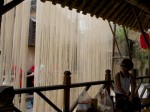 有一個店家把麵條拿出來曬,曬麵條的桿子有兩個人高,但麵條一根一根掛在那裡,像瀑布一樣,心想一個海碗,恐怕還盛不下一條麵呢。