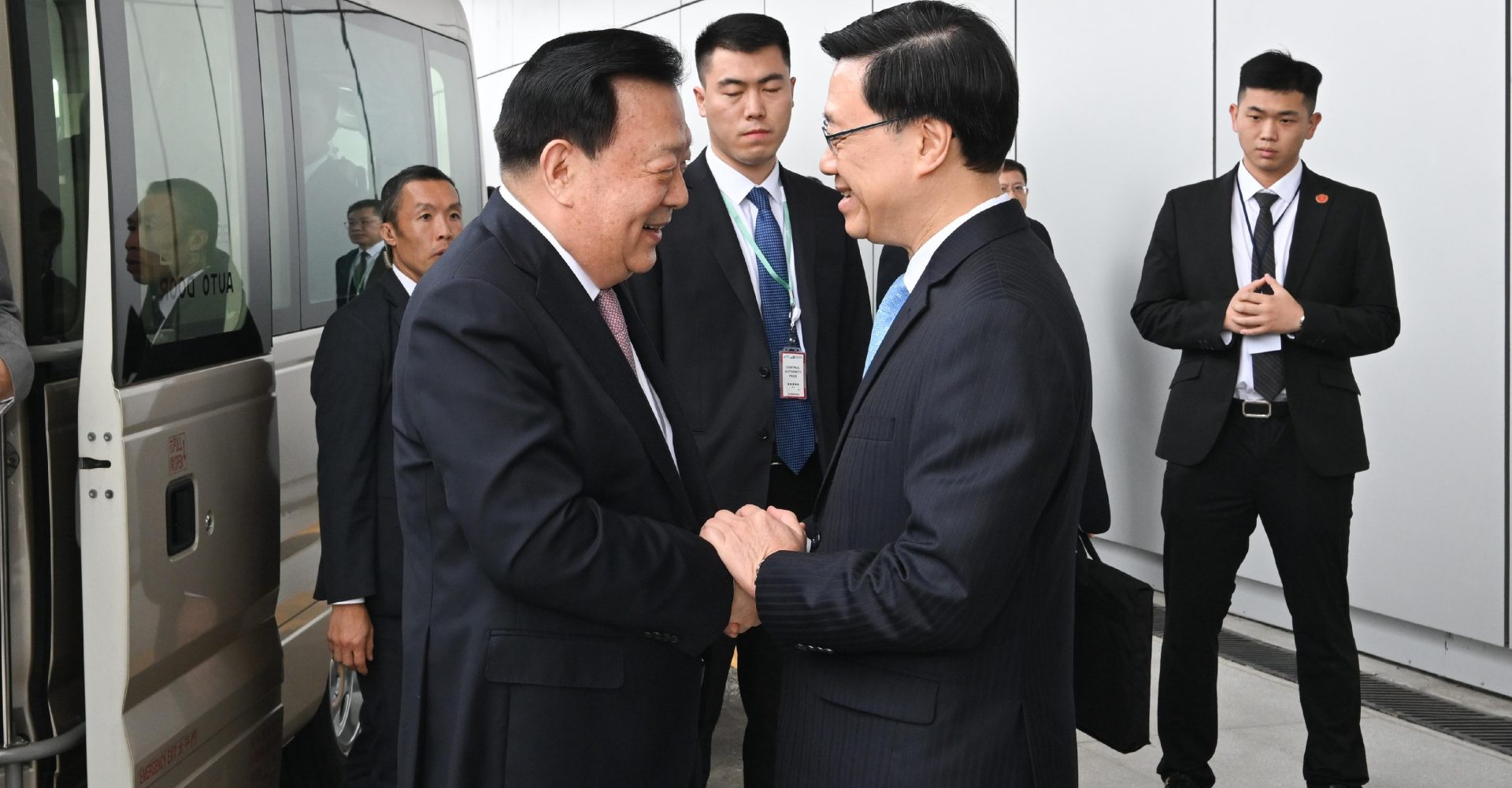 下午,夏寶龍與李家超率領的特區政府全體主要官員及常任秘書長,進行了座談交流。