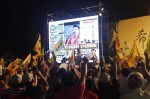 【台灣選戰_高雄直擊】高雄市民進黨候選人陳菊晚上約7時10分,從競選總部出來,與聚集在競總外的支持者見面,並發表勝利講話,之後又與民眾握手。截止晚上近7時,陳領先國民黨候選人楊秋興約40萬票。