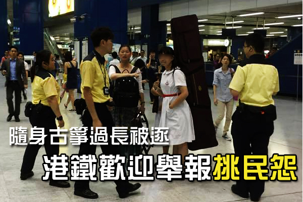 一名女學生孭着一個與她身高相若的古箏,前晚(15日)在大圍站遭港鐵職員截停,指其古箏盒長度超過港鐵行李規定的130厘米,女生被要求離開車站。