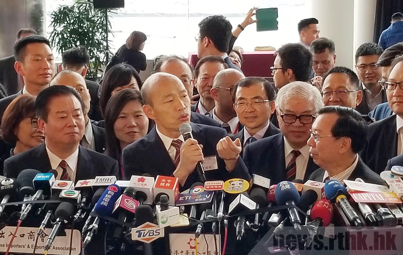韓國瑜將今次訪問定位為「經濟之旅」、「情感交流之旅」,未有回應「九二共識」等政治問題。他指目前還未談及粵港澳大灣區的計劃,這次訪港最主要是「交朋友、做生意」。他期望香港與高雄多來多往,亦建議香港郵輪可以多停一站在高雄,帶動人流。