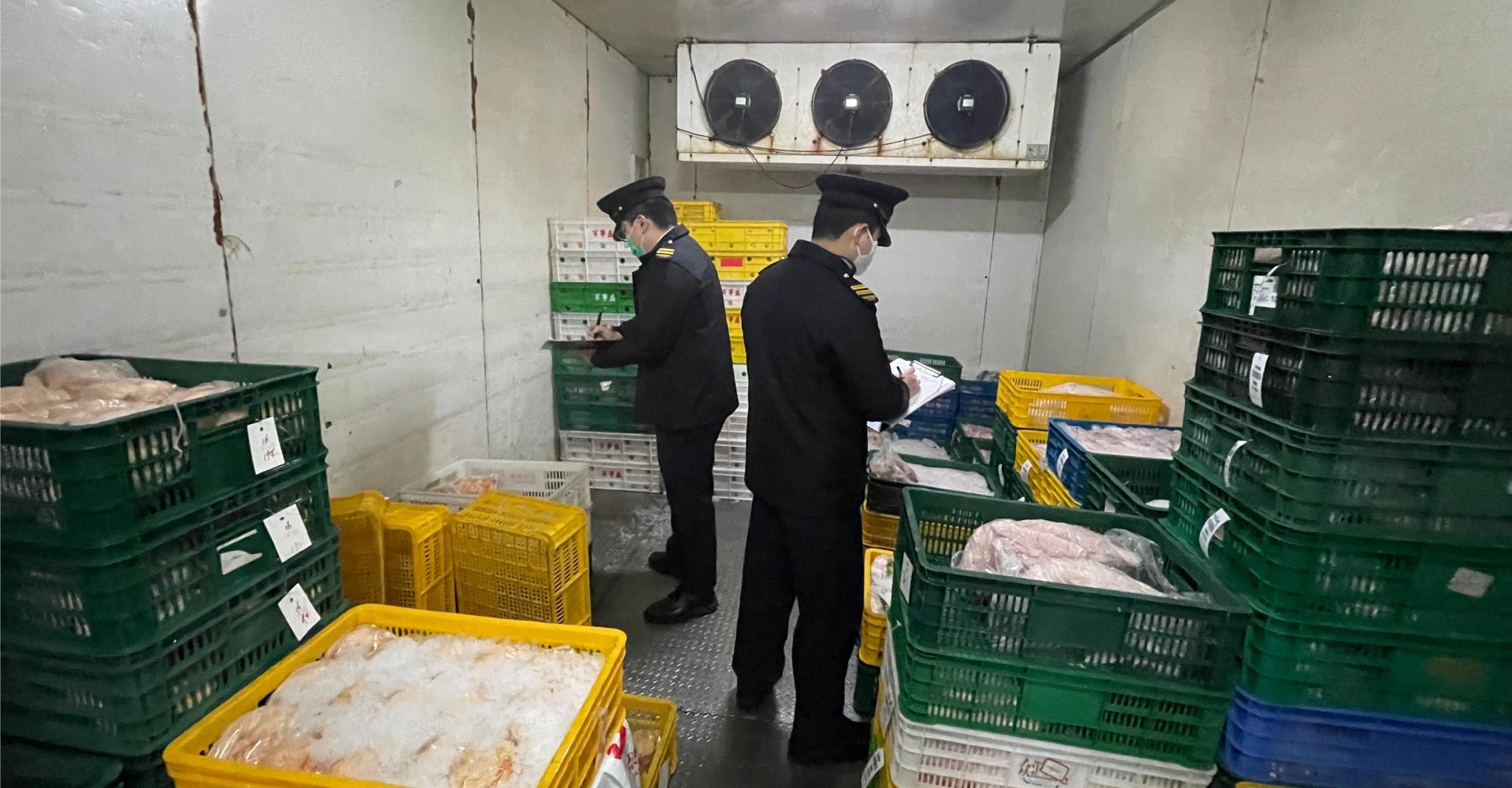 主圖片:食環署人員檢查元朗無牌凍房內的存貨。