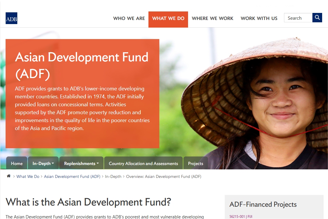 主圖片:亞洲開發銀行網站中的亞洲開發基金網頁。