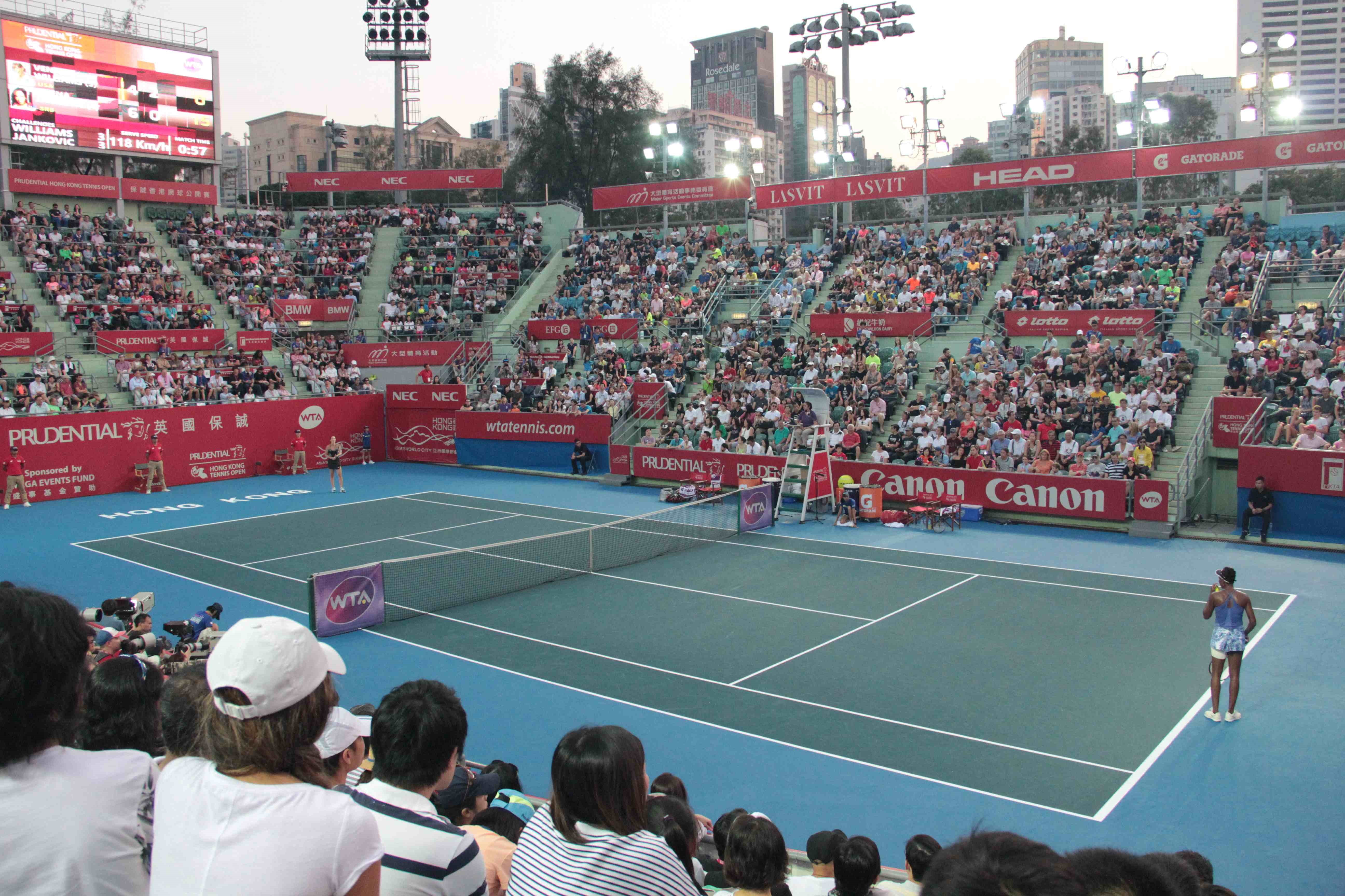 內容:保誠香港網球公開賽半準決賽,日前(17/10)於維多利亞公園網球場舉行,兩位前世界網球一姐,威廉斯(大威)和恩高域率先在四強碰頭,場內坐無虛席。歷時兩小時零四分鐘的比賽後,最後恩高域以6-4和7-5直落兩盤晉身決賽。
