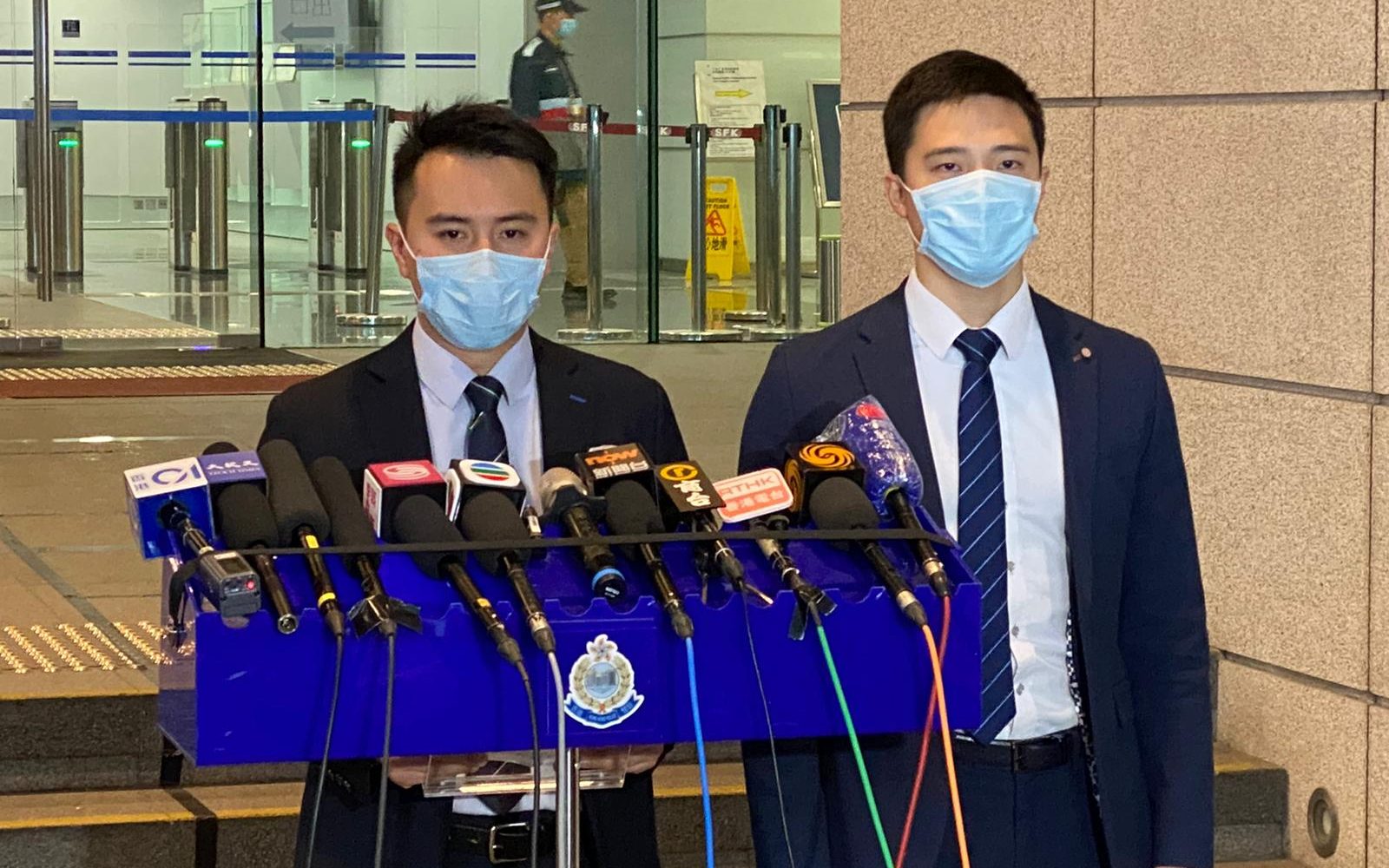 商業罪案調查科署理警司吳基駿(圖左)表示,警方鎖定兩名涉案男子,年齡分別17及25歲,相信其中一人是當日向受害人縱火的黑衣人,另一名為同黨,當日亦在現場。