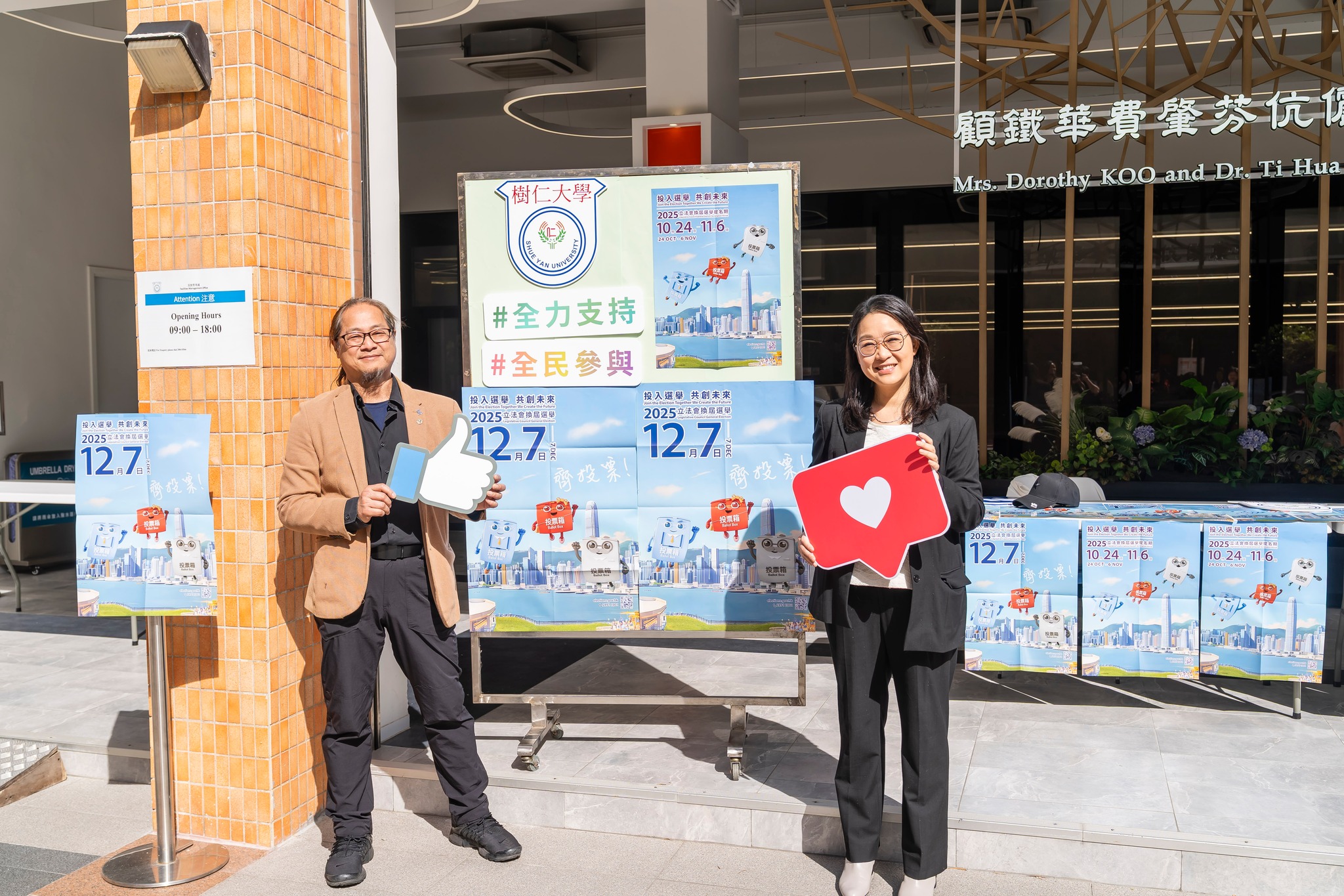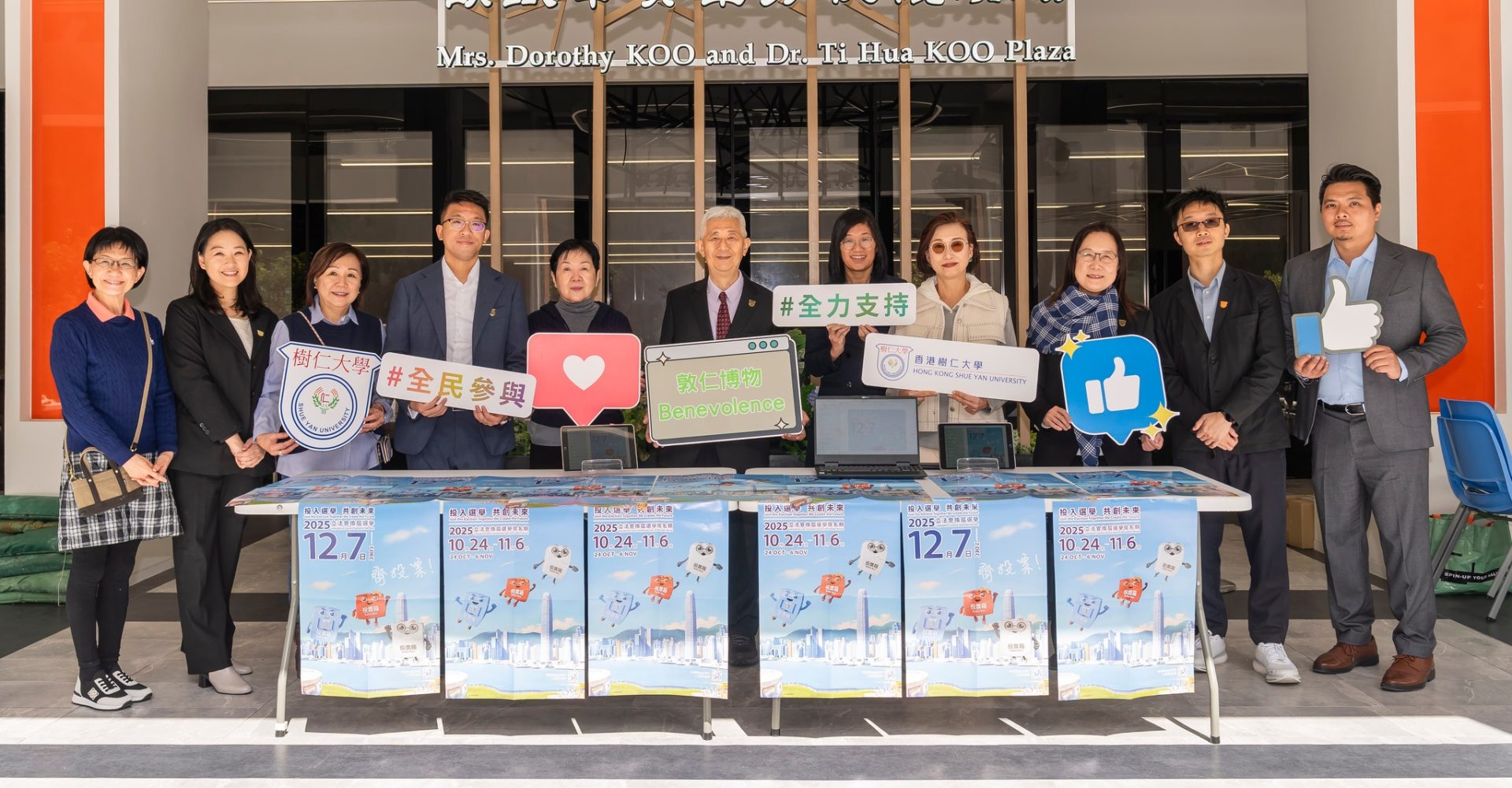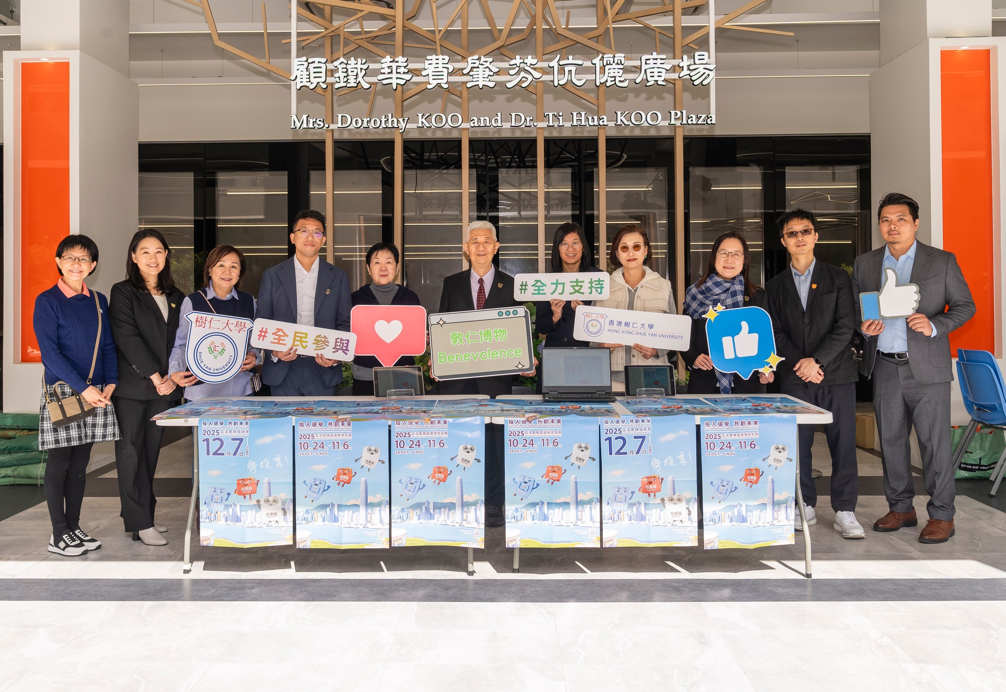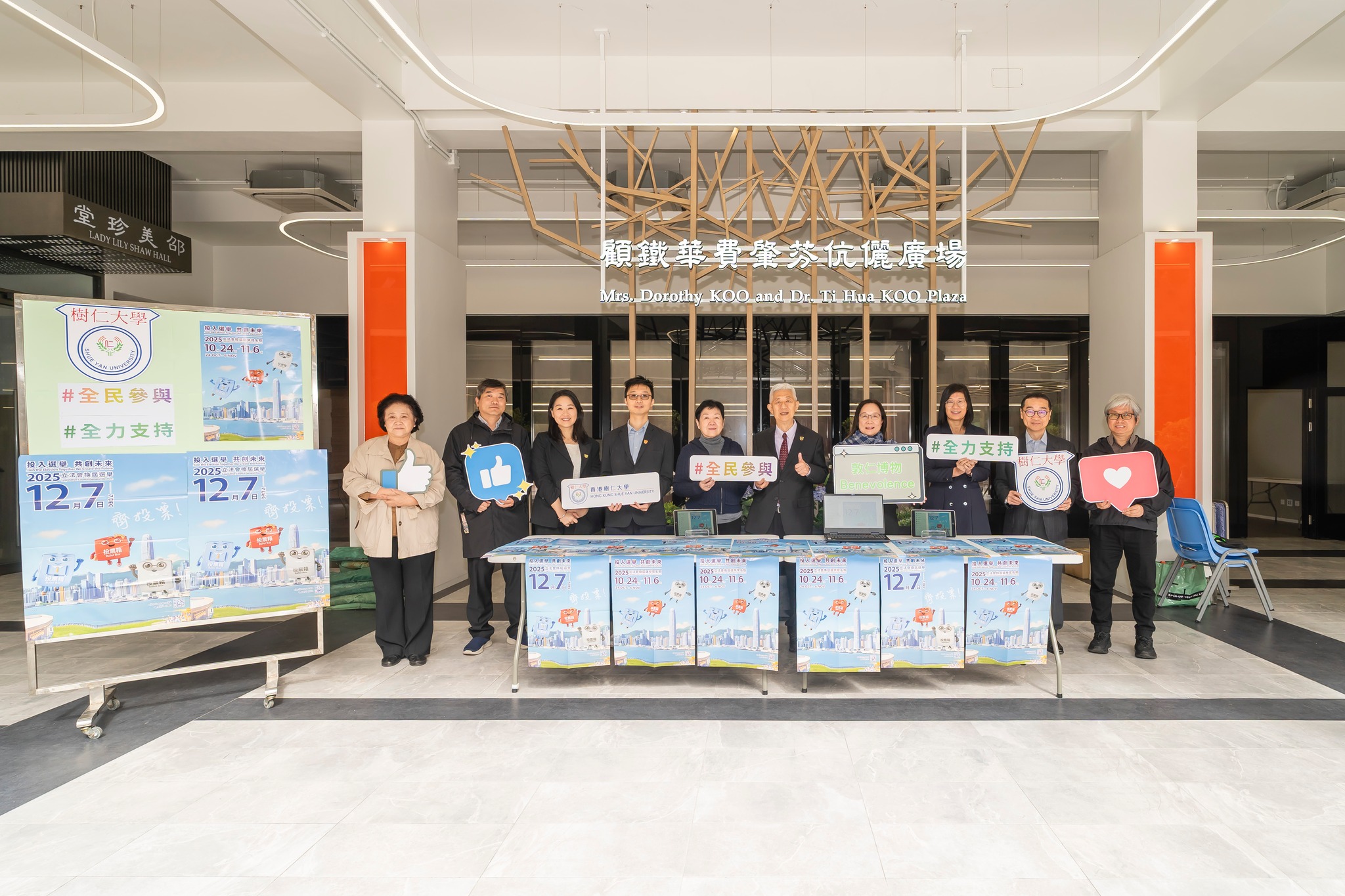 立法會換屆選舉將於12月7日舉行,香港樹仁大學透過不同方式鼓勵全體職員及同學關心公共事務,齊心響應踴躍投票,包括攤位展示、發送電郵及在校園張貼海報。當日投票時間為上午7時30分至晚上11時30分,大學會為當天需要當值的同事作出彈性上班或輪更安排,並鼓勵同學履行公民權利及義務,積極投票。
